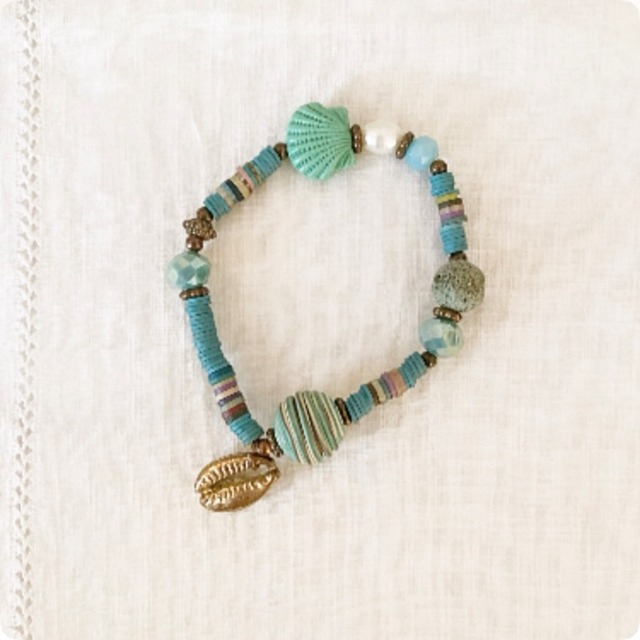 シェルモチーフとビーズの絶妙な組み合わせは、一つ一つが手作りのような温もりを感じさせます。