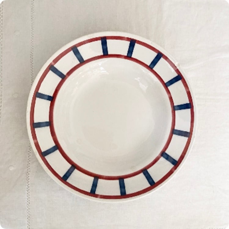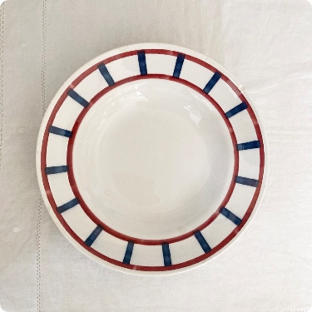【フランス直輸入】ボルドー×ブルーカラー 人気の バドンヴィレー バスク柄 アンティーク スープ皿
