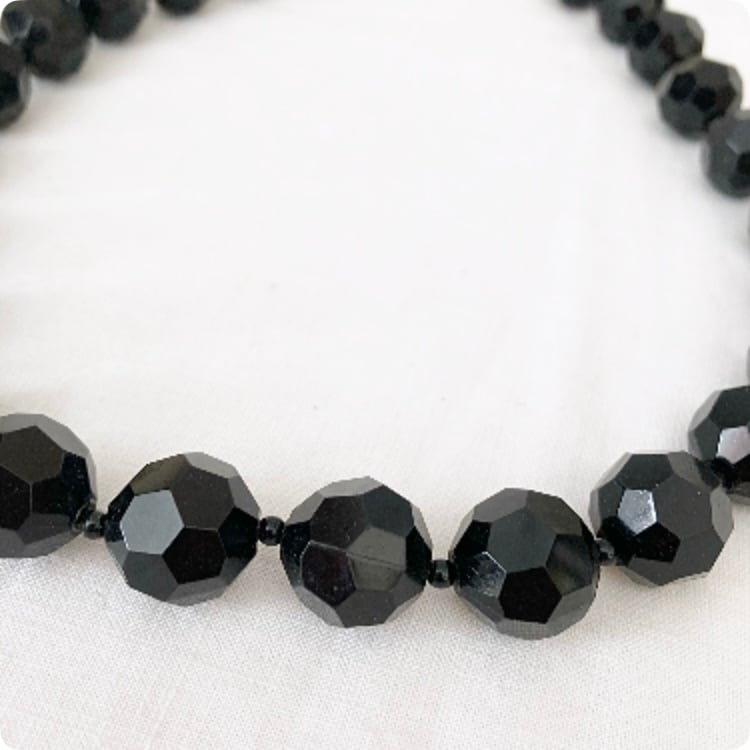 エレガントで美しいファセットブラックビーズ「BELLE PARIS」のヴィンテージネックレスです。