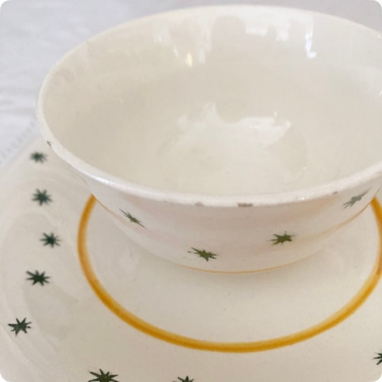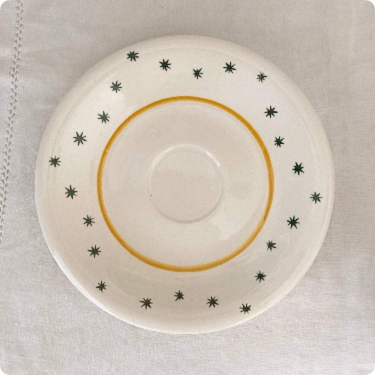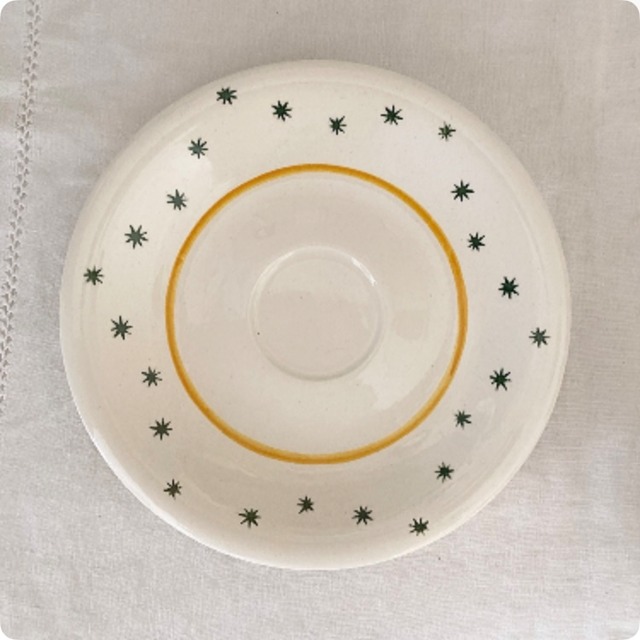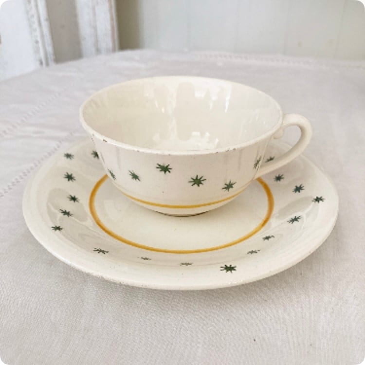 【フランス直輸入】イエローのラインとグリーンの星柄が可愛らしい ヴィンテージ GIEN カップ&ソーサー