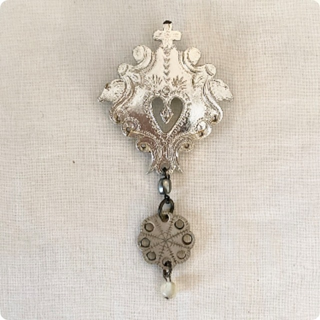 【フランス直輸入】ハートと十字架モチーフがオシャレな ヴィンテージ ブローチ