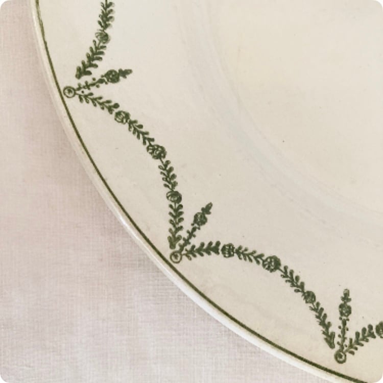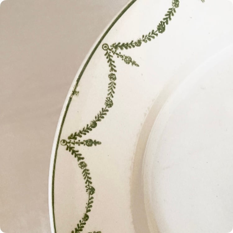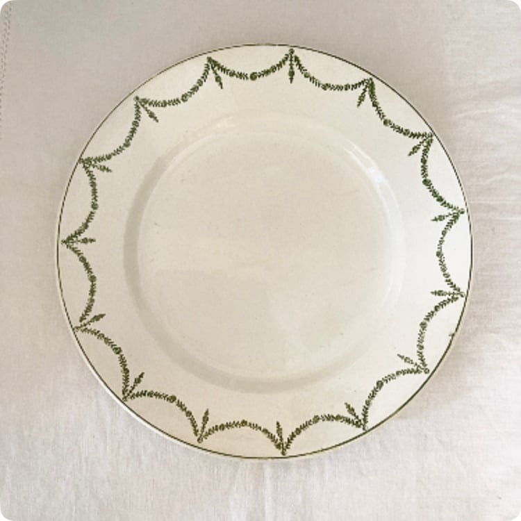 【フランス直輸入】グリーンのガーランド模様が素敵 アンティーク リュネヴィル ディナー皿