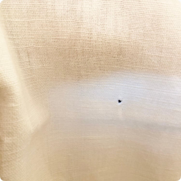 経年による小さなシミや汚れ、糸のほつれ等多少見受けられます。また一ヶ所小さな穴があいています。
