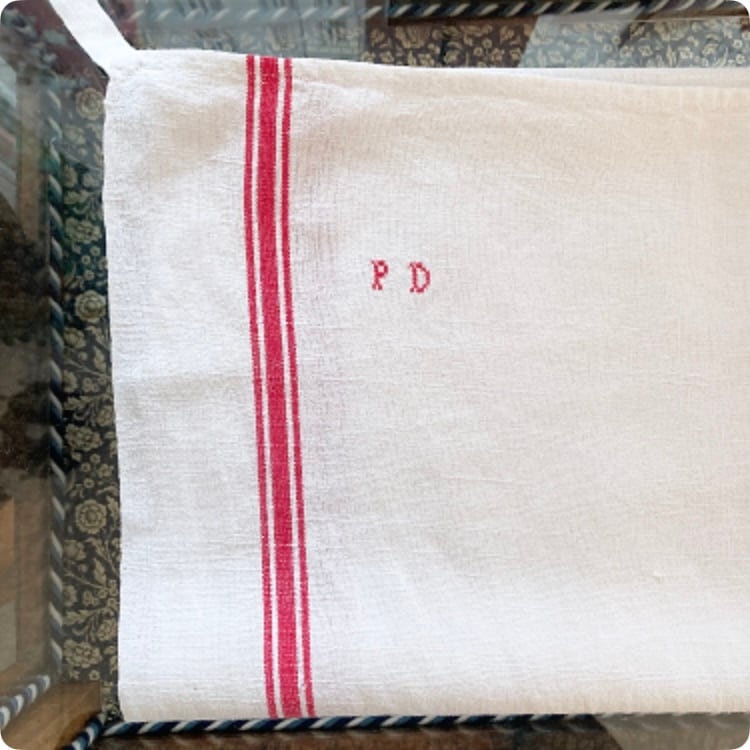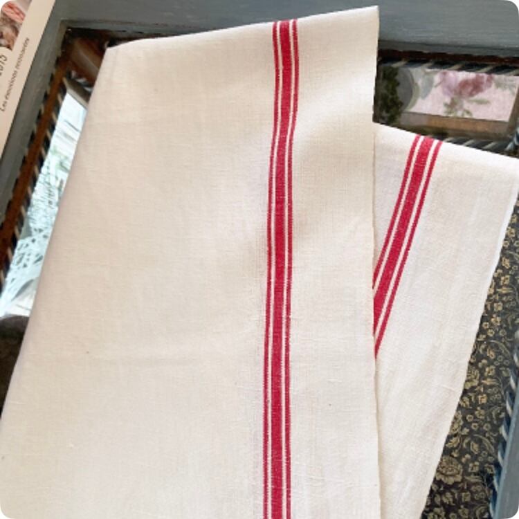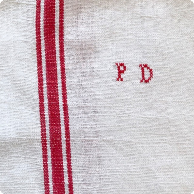 パリの蚤の市で買付けた、美しい赤いラインがサイドに際立つシンプルなデザインのトルションです。