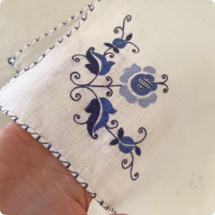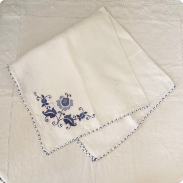 [フランス直輸入] フランスの手仕事が美しい 鮮やかなブルーとホワイトが素敵 ヴィンテージ テーブルナプキン