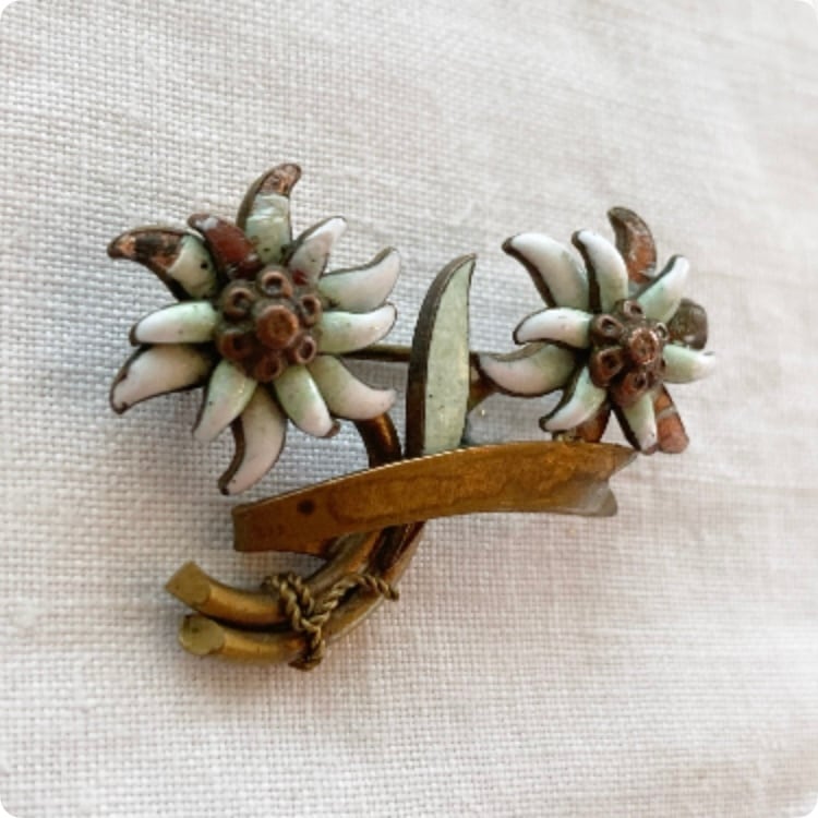 フランスから買付けたばかりのエーデルワイスのブローチです。