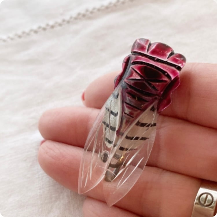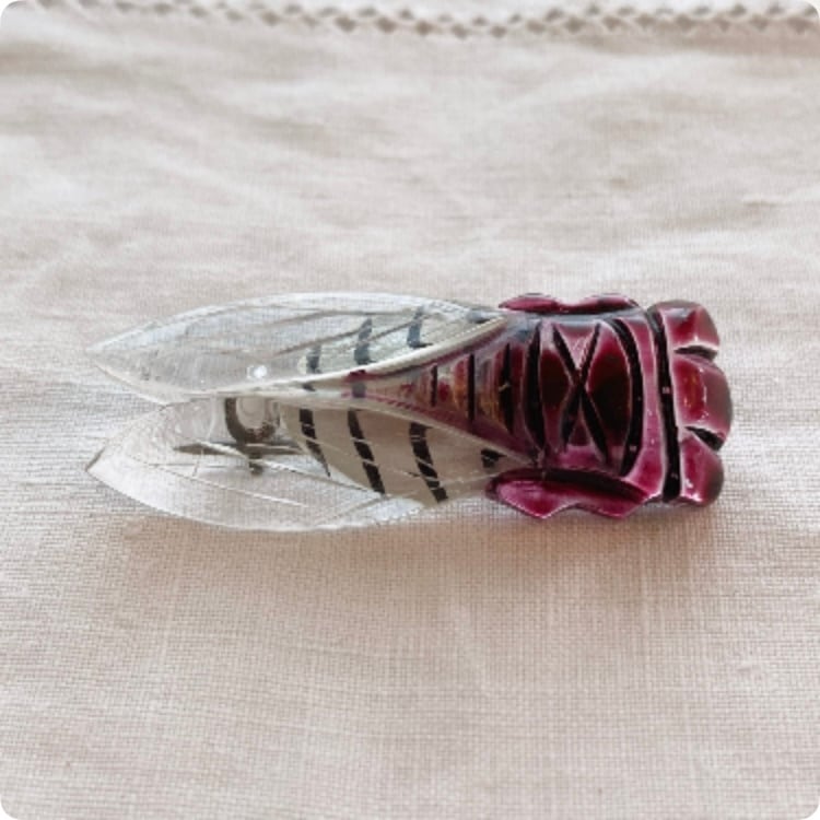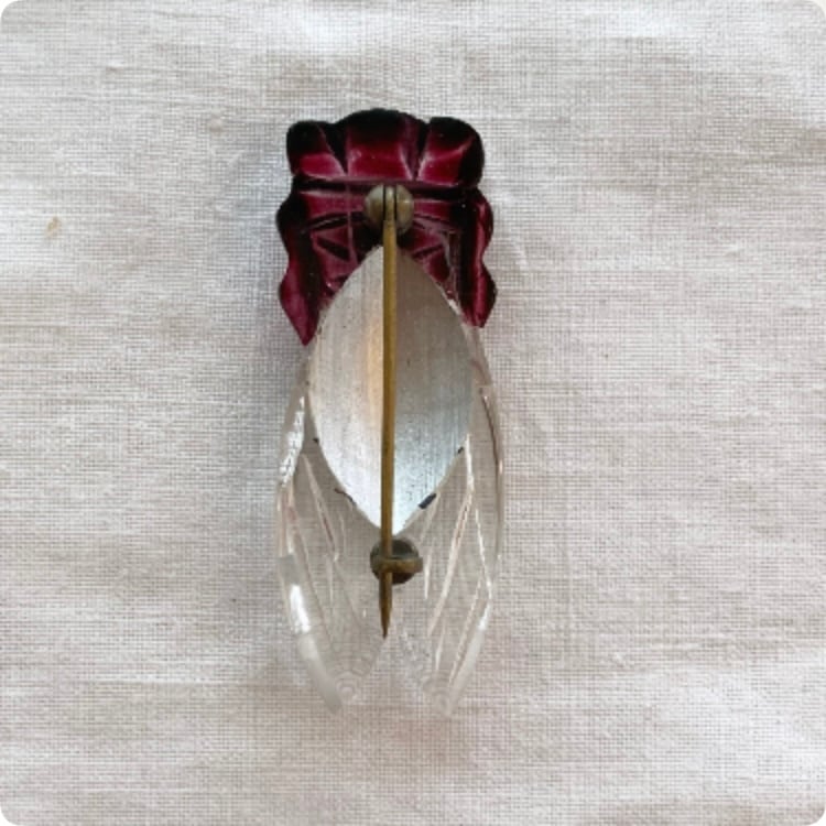 【フランス直輸入】他にはない個性が魅力的 アイコニックなセミ型 ルーサイト ヴィンテージブローチ