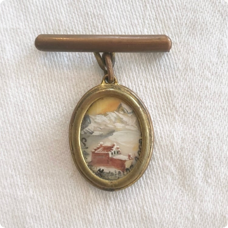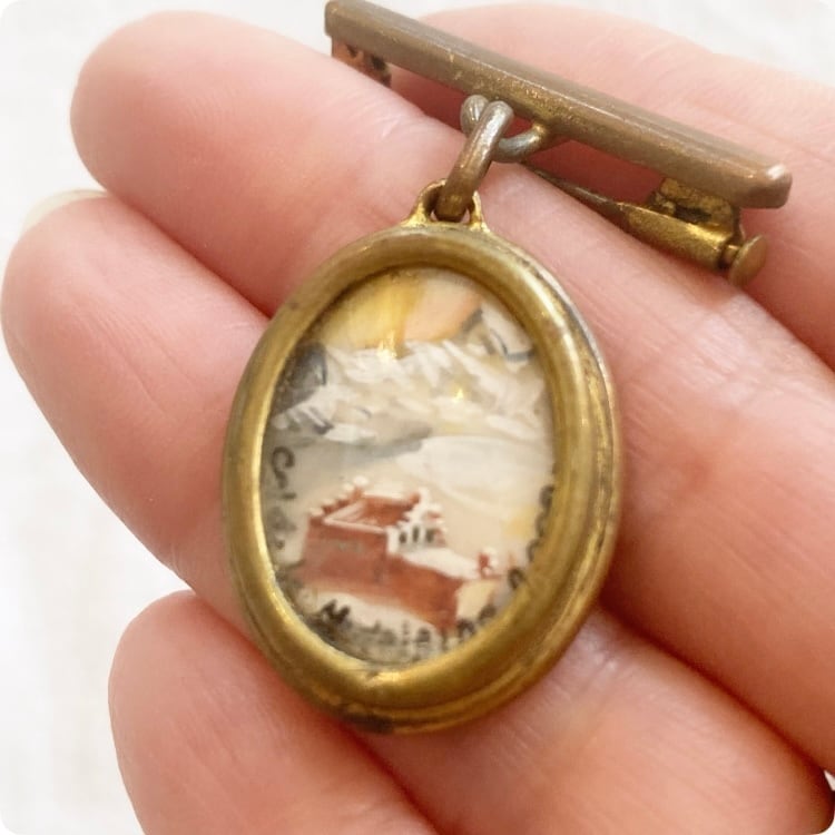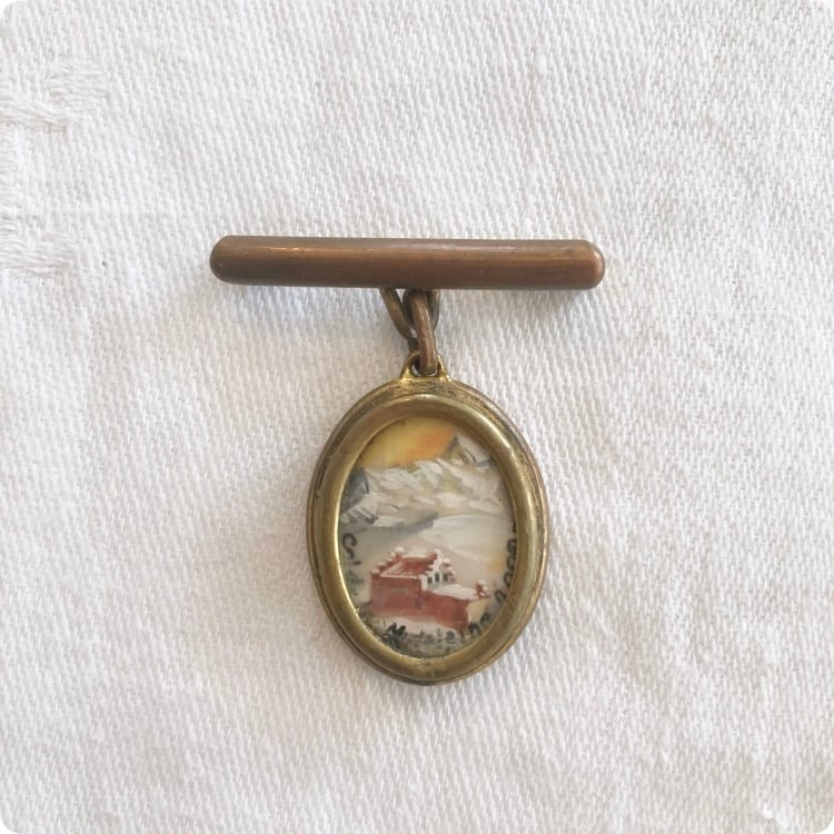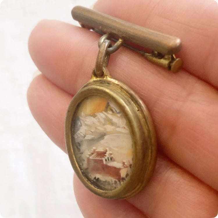 【フランス直輸入】趣のある風景画が素敵 ランドスケープアゲート ヴィンテージ ブローチ