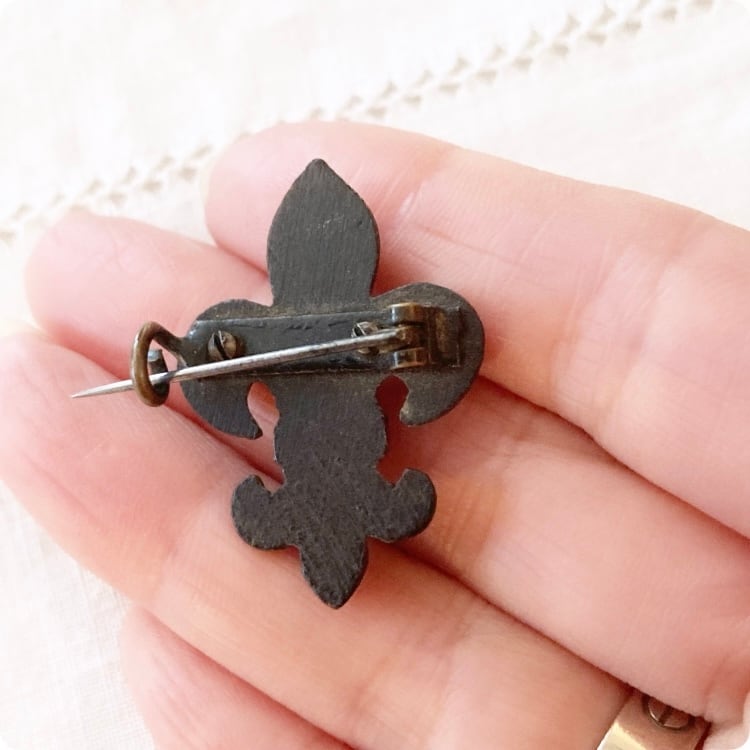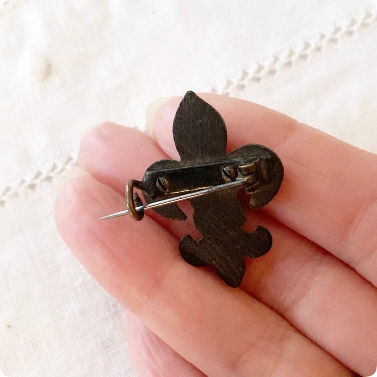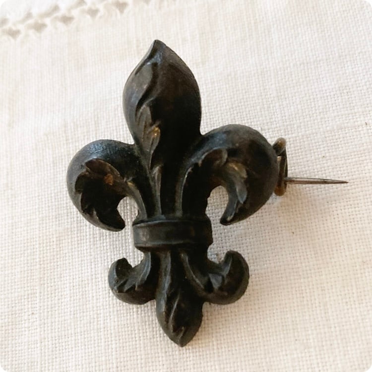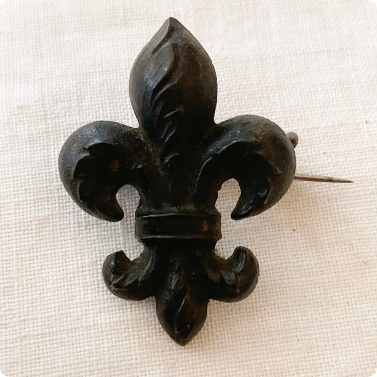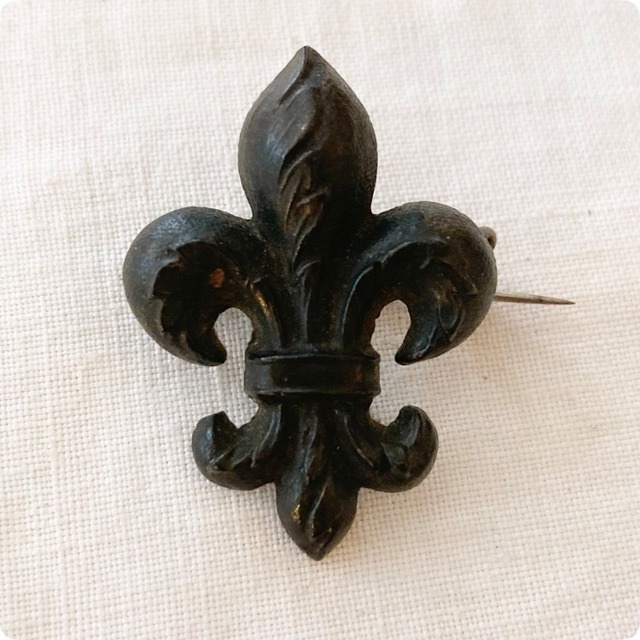 こちらはフランスから買付けた、マットな質感が美しいフルール・ド・リスのブローチです。
