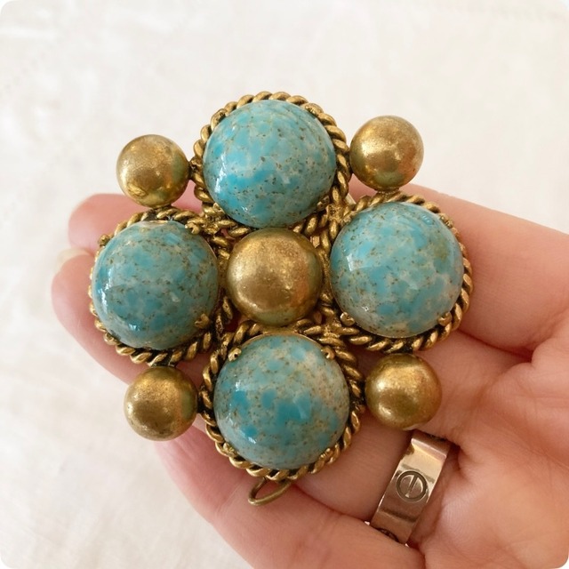 【フランス直輸入】存在感のある大きさとターコイズカラー ヴィンテージ ブローチ