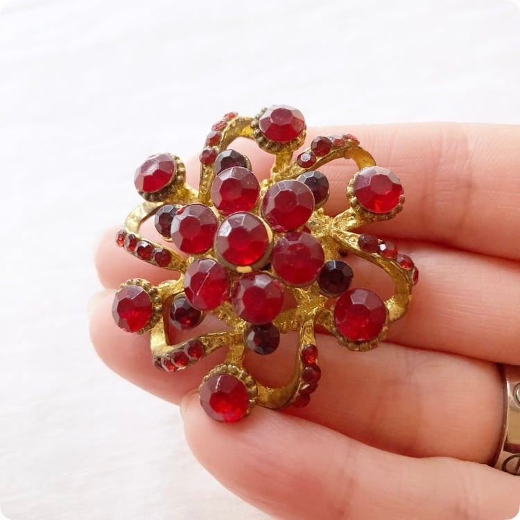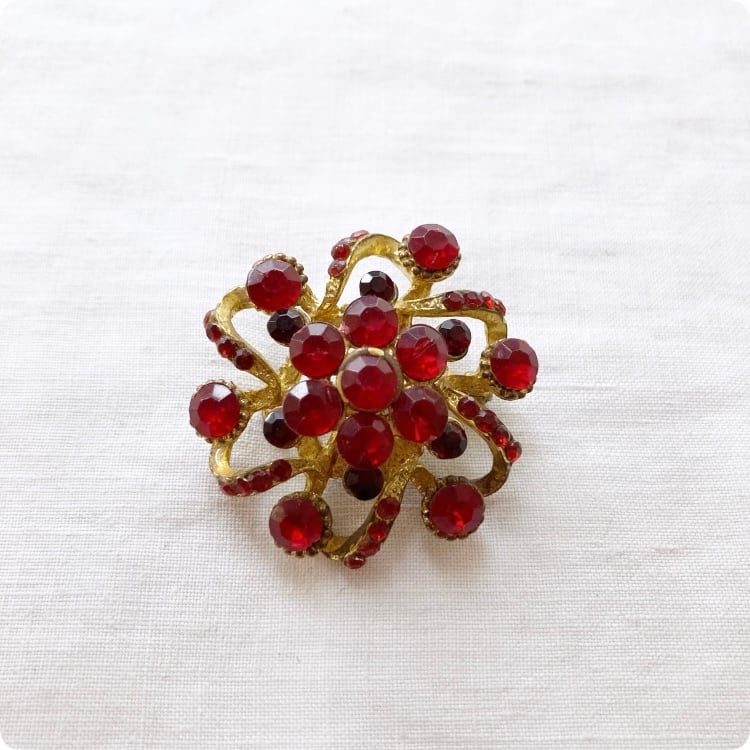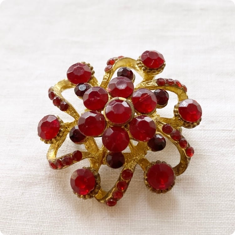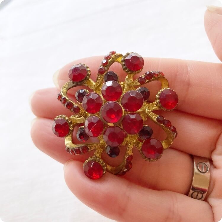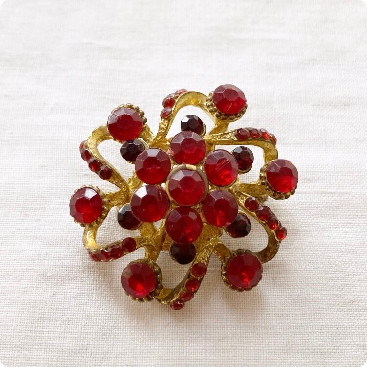 ■深紅に輝く魅惑的なヴィンテージブローチ