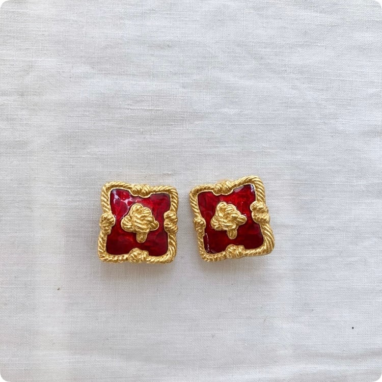 【フランス直輸入】鮮やかな赤いエナメルに心奪われる ヴィンテージイヤリング