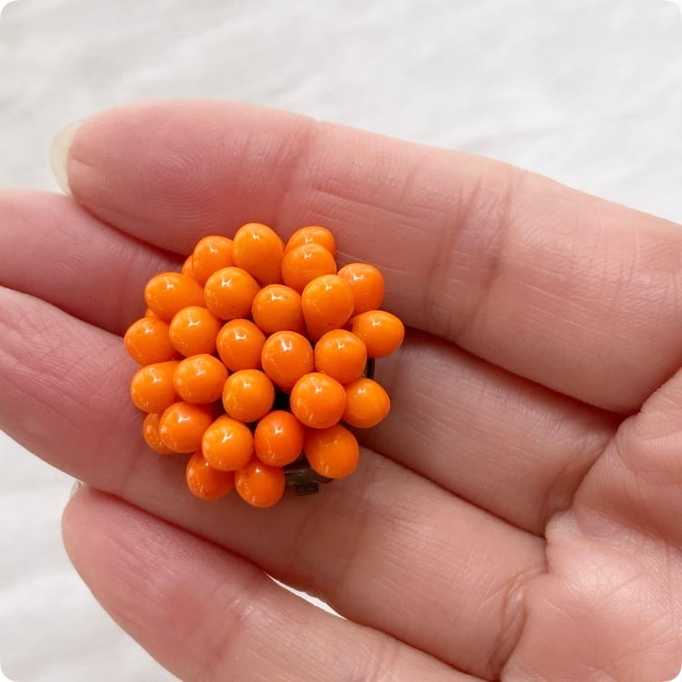 【フランス直輸入】つぶつぶのオレンジカラービーズが可愛い ヴィンテージイヤリング
