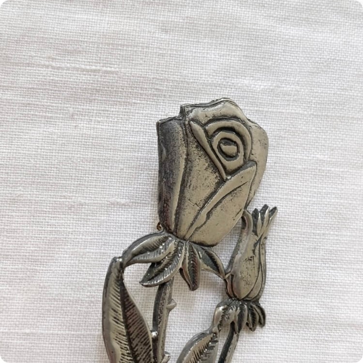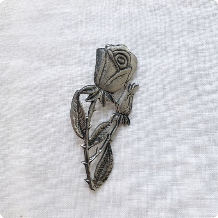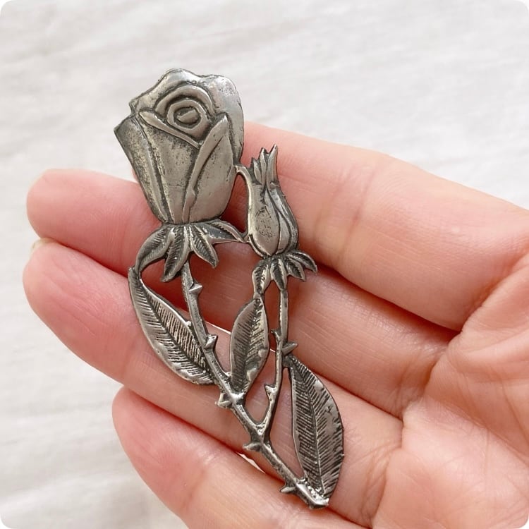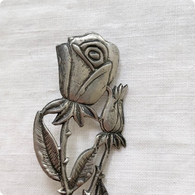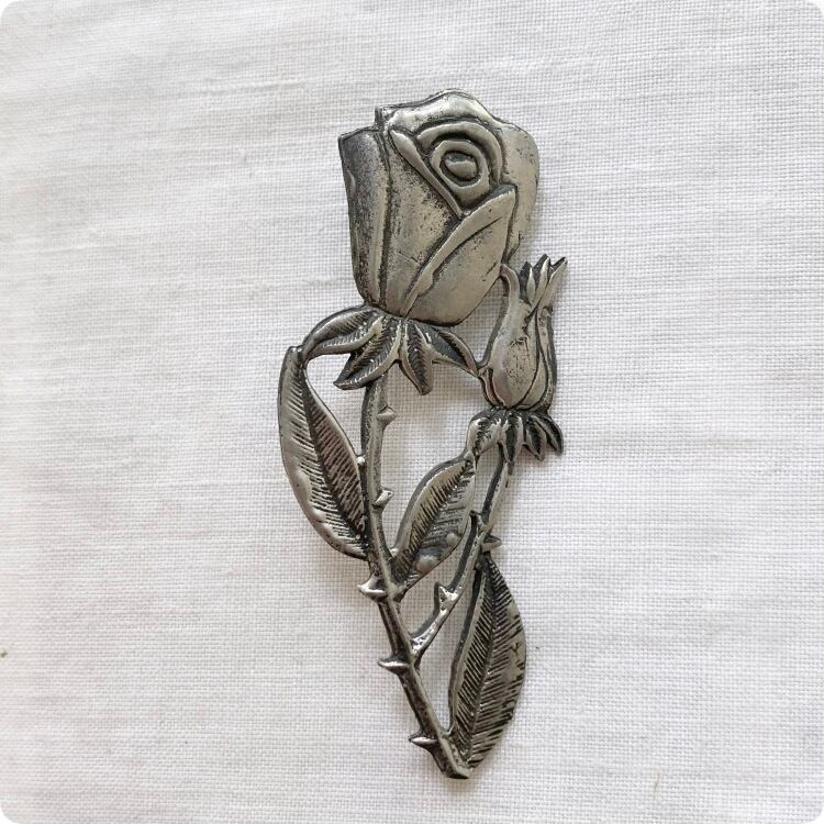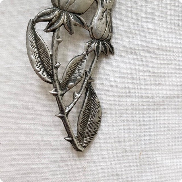 フランスヴィンテージ ブローチ |ピューター製 薔薇柄 1900年代