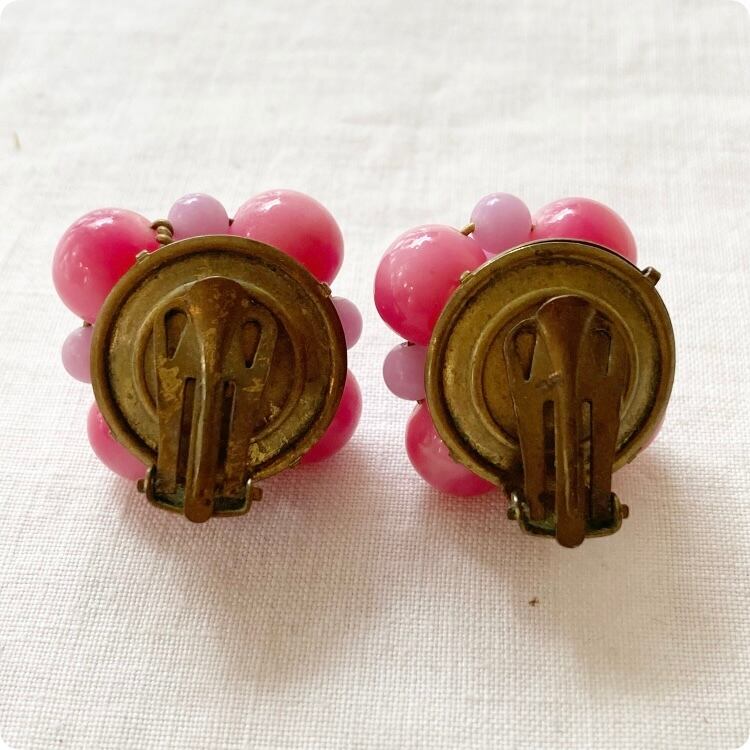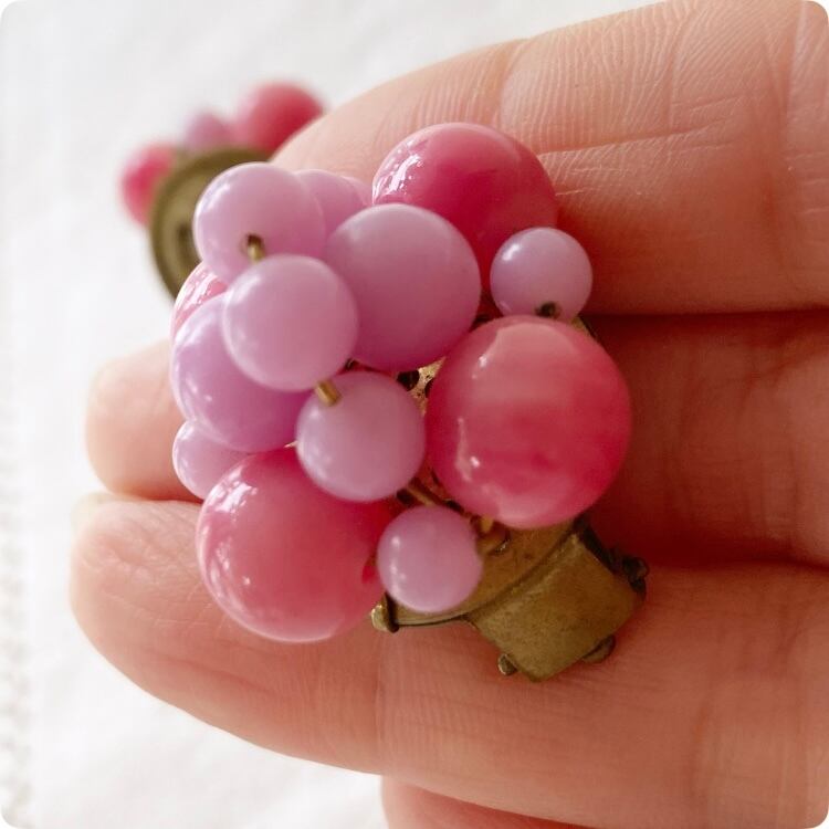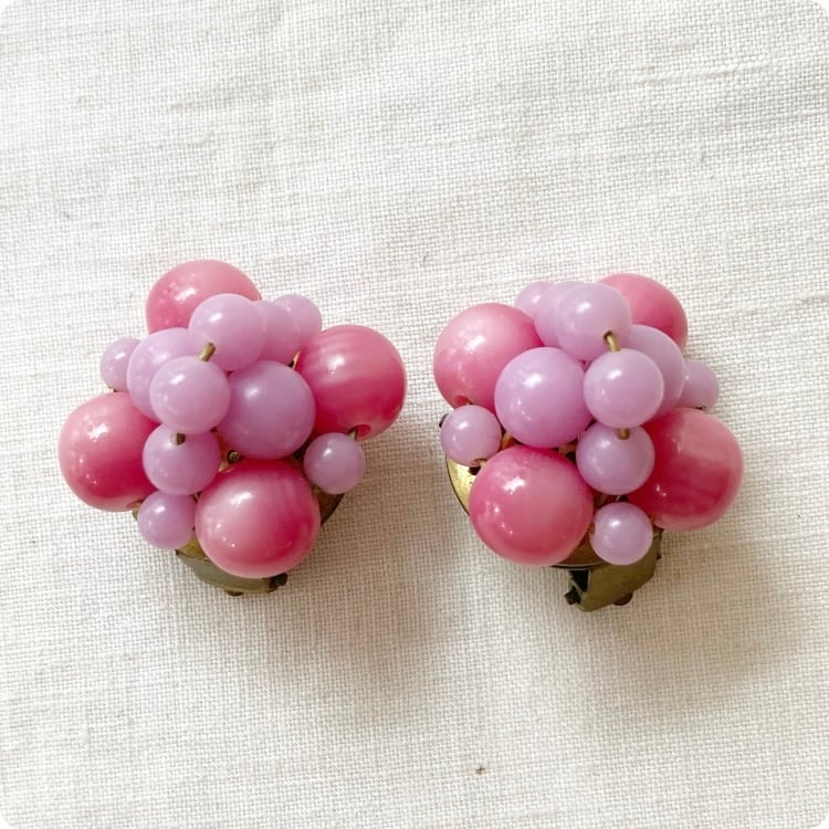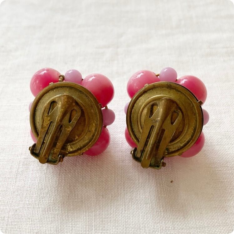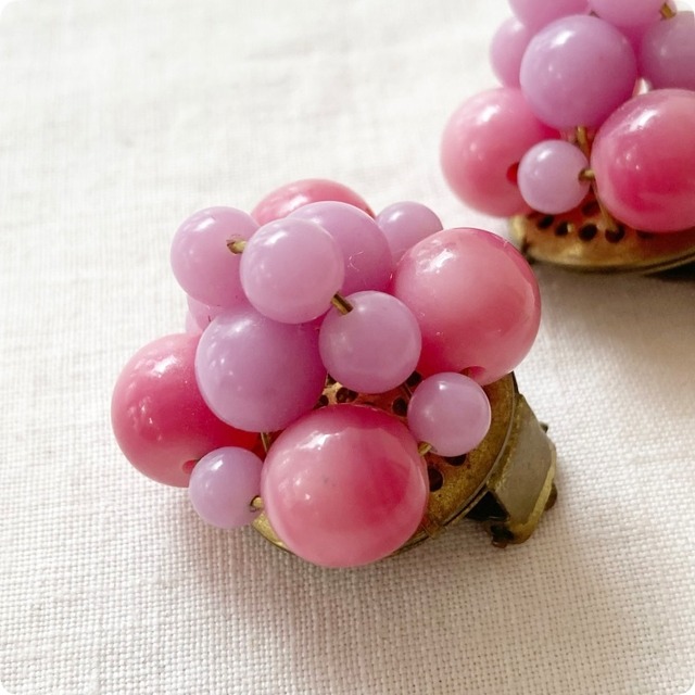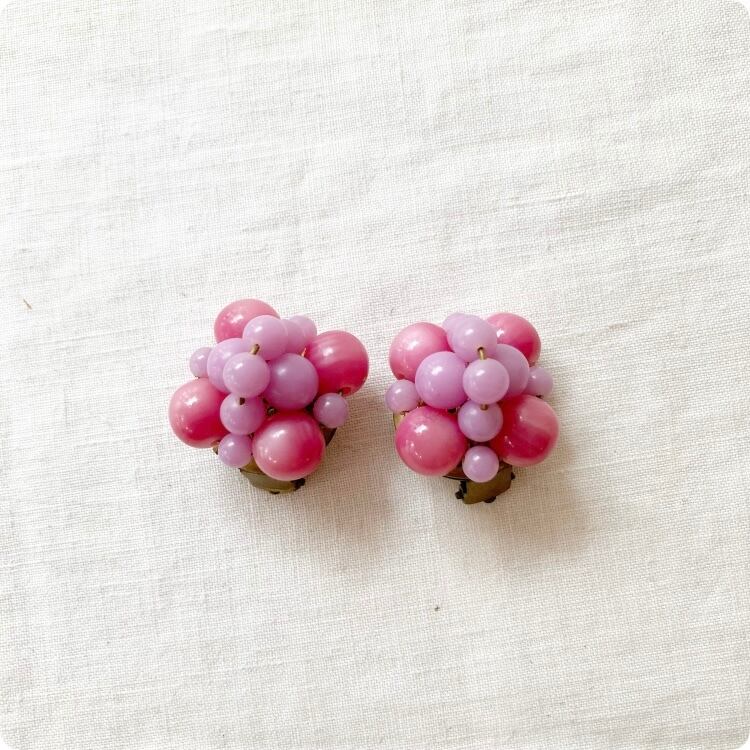 フランスヴィンテージ イヤリング|ピンク×ラベンダーカラー ビーズ レトロ可愛い |1970年頃