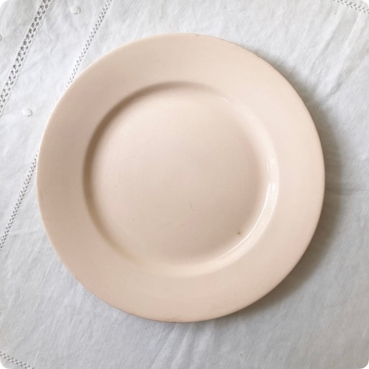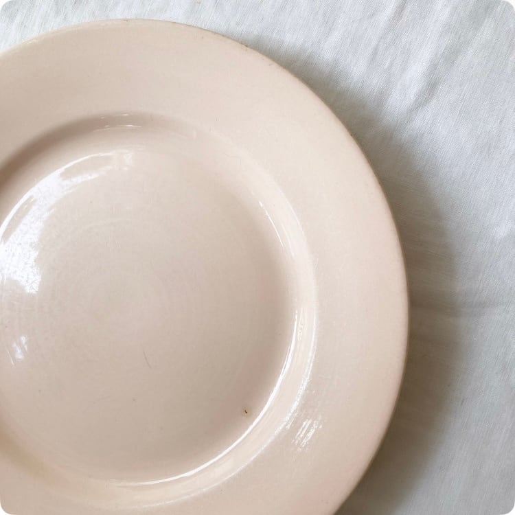 フランスアンティーク 皿|ディゴワン・サルグミンヌ(Digoin Sarreguemines) 淡いサーモンピンク プレート|1920-50年頃 陶器製 ①