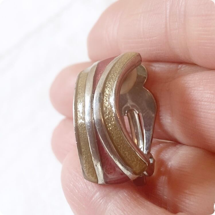 フランスヴィンテージ イヤリング|ピンク×ゴールド ヴィンテージアクセサリー |1900年代中頃
