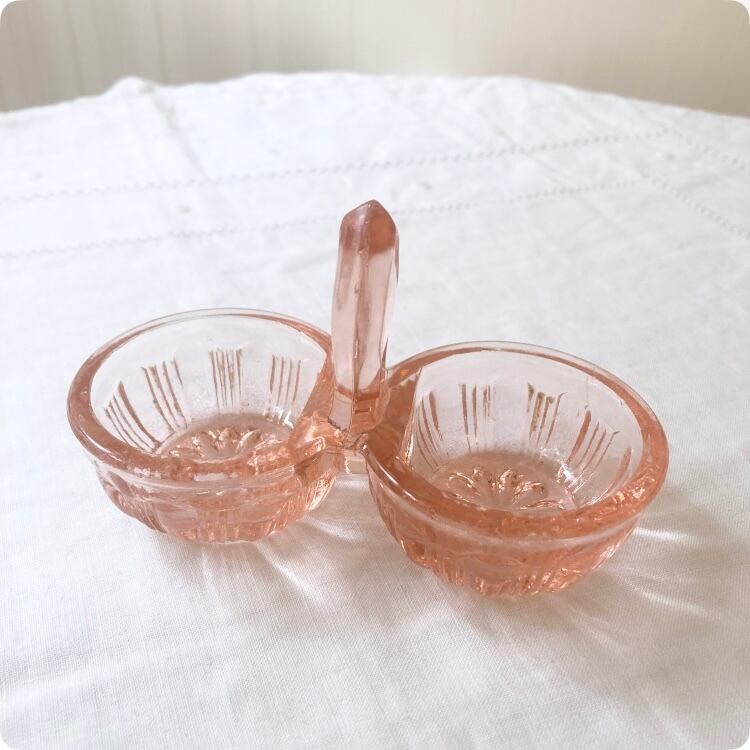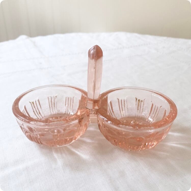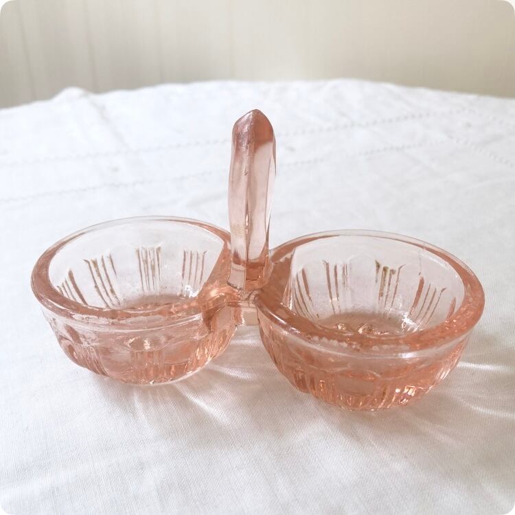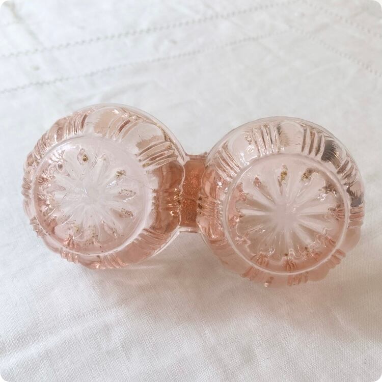 フランスヴィンテージ ソルト&ペッパー|ピンクカラー プレスガラス 塩コショウ入れ|1950年頃