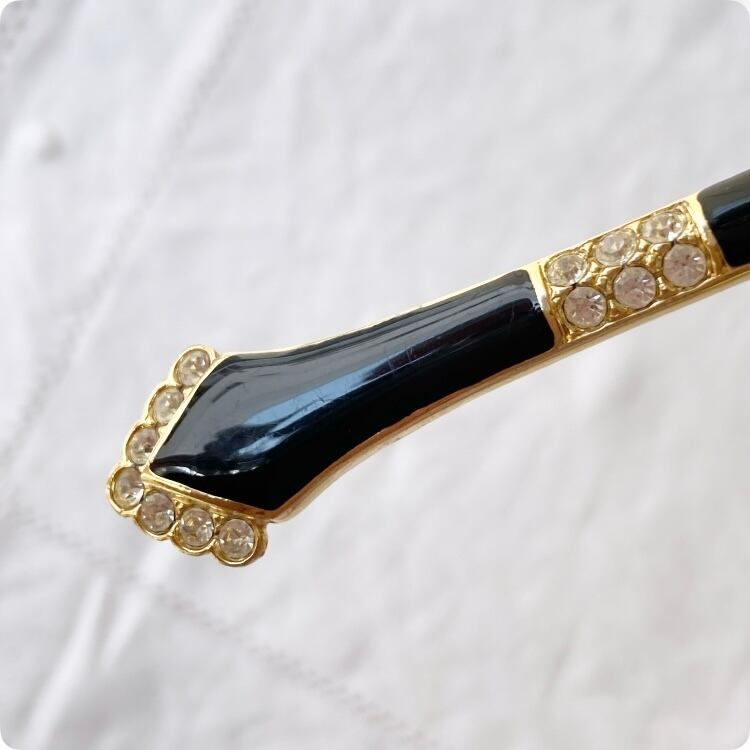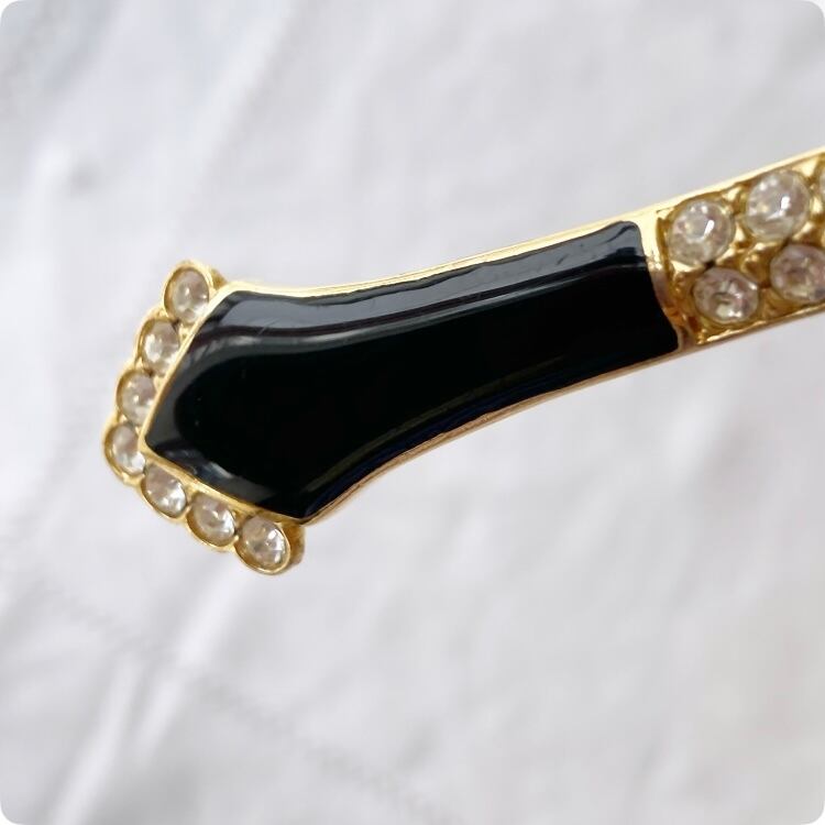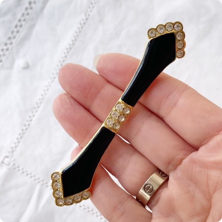 フランスヴィンテージ ブローチ |アールデコ調 黒のエナメル×ゴールドトーン|1900年代中頃