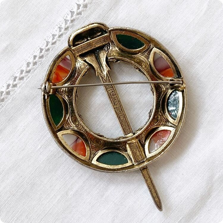ミラクル社製のこのブローチは、ケルトのソードとシールドをモチーフにした独特なデザインが魅力です。