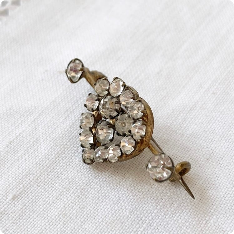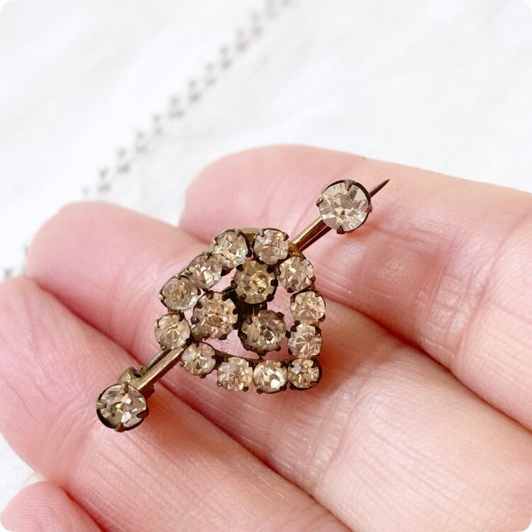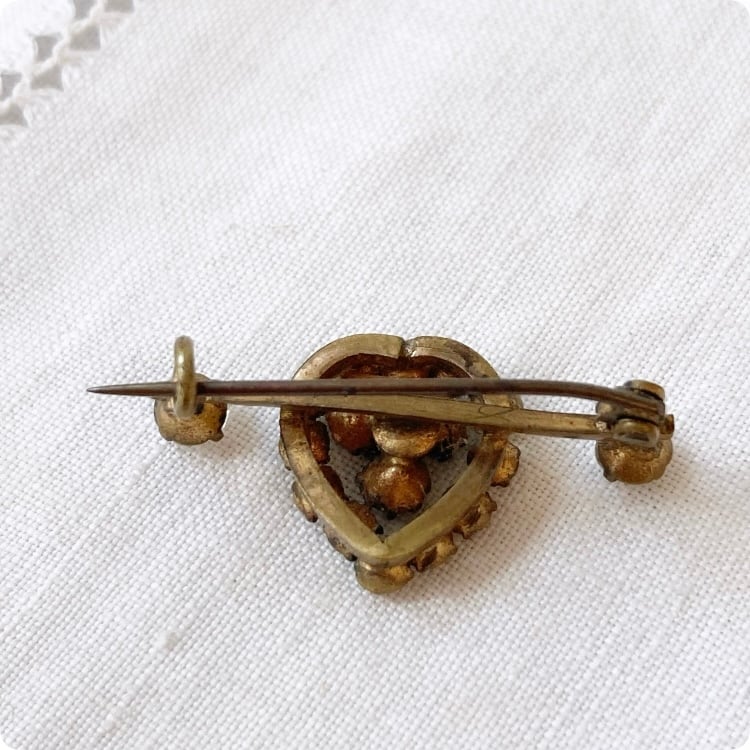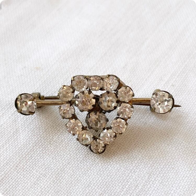 フランスヴィンテージ ブローチ |ハートモチーフ クリアグラス ヴィンテージアクセサリー|1920年頃