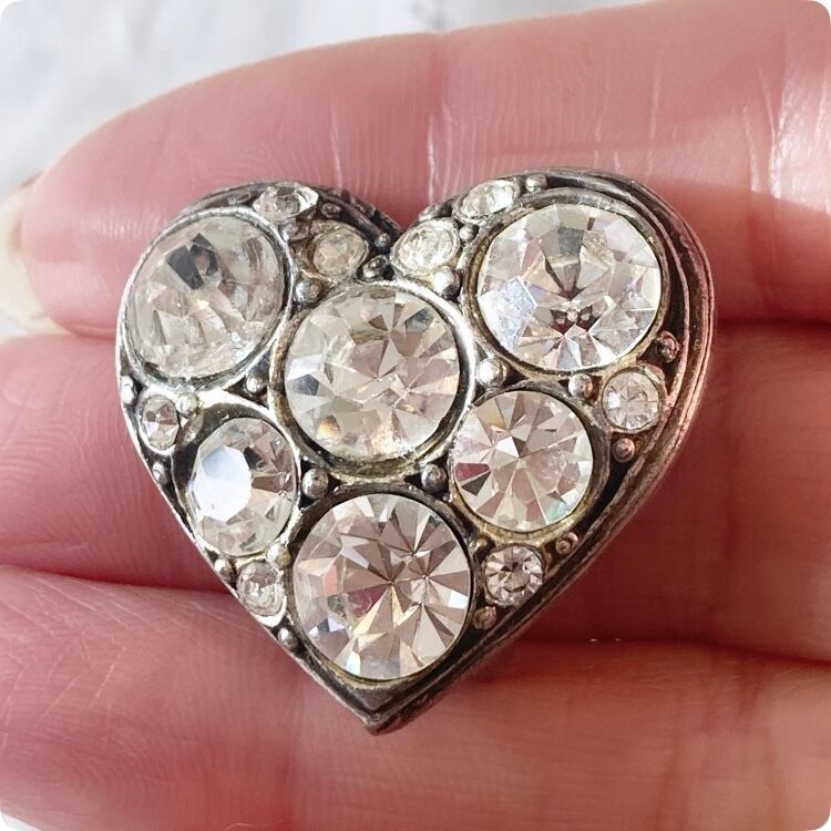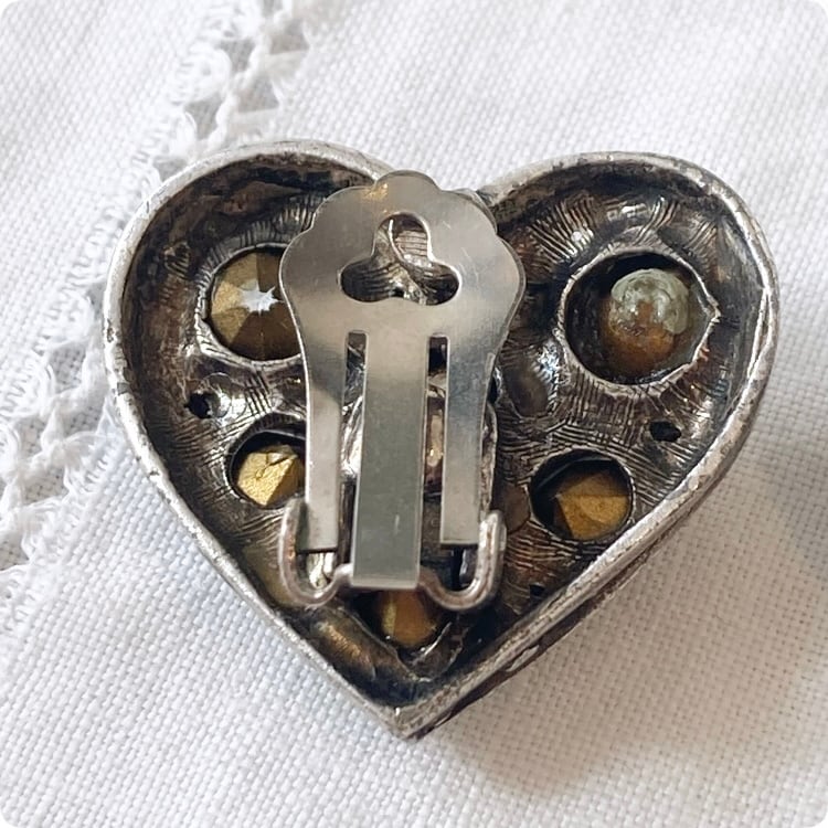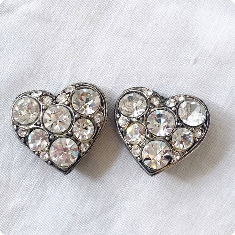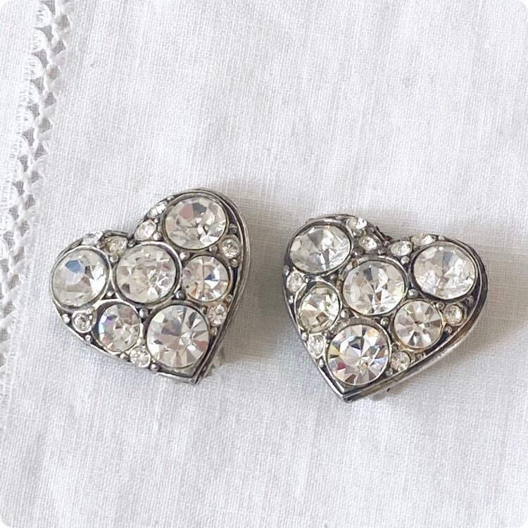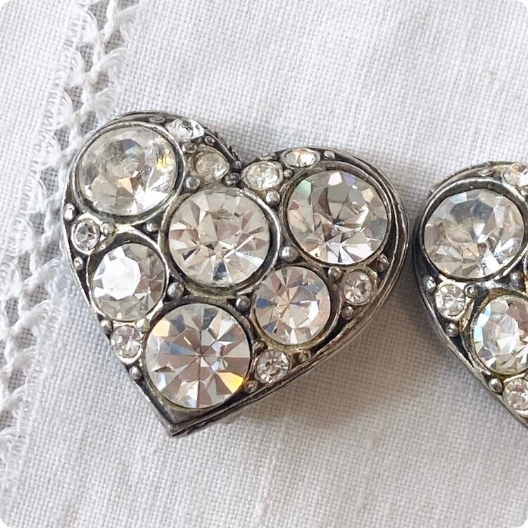 フランスヴィンテージ イヤリング |ハート型 ラインストーン|1900年代後半