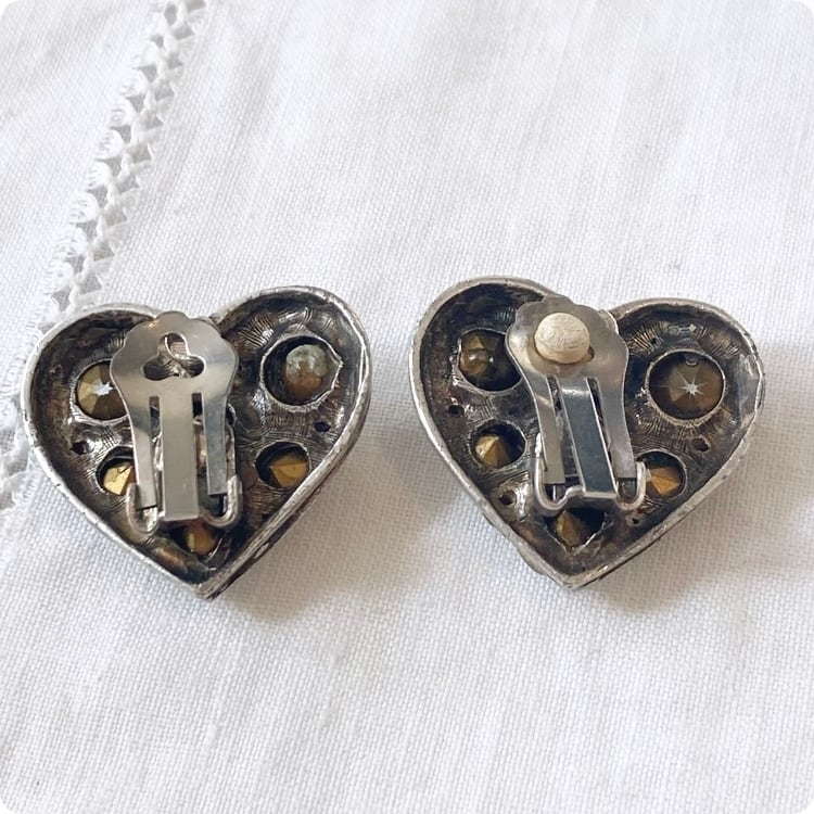 1900年代中頃に製作された、フランスヴィンテージのハート型ラインストーンイヤリングです。