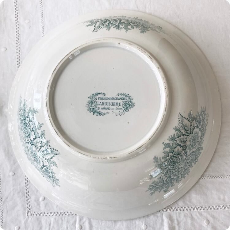 「サルグミンヌ」(Sarregumines)窯の「JARDINIERE」デザインが施されたこのアイテムは、曲線的なフォルムと女性らしいエレガンスが特徴です。