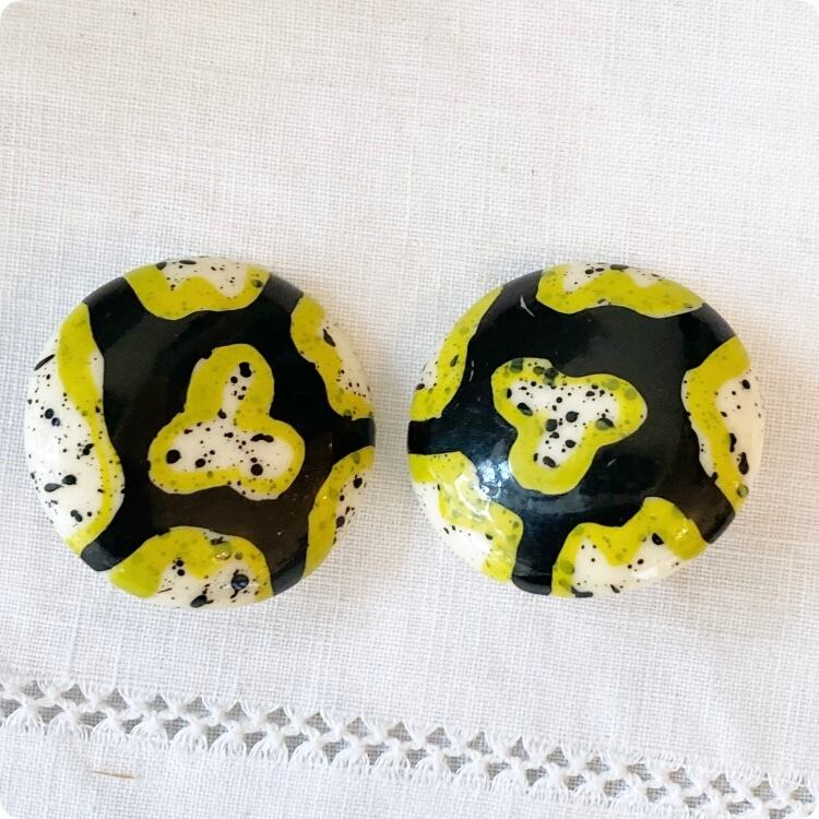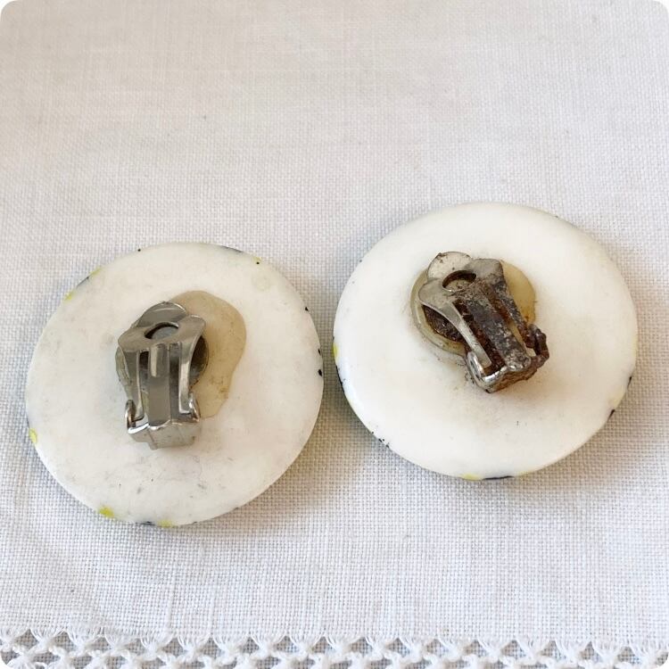 フランスヴィンテージ イヤリング|レトロスタイル 個性派 エナメル斑点模様 |1900年代中頃
