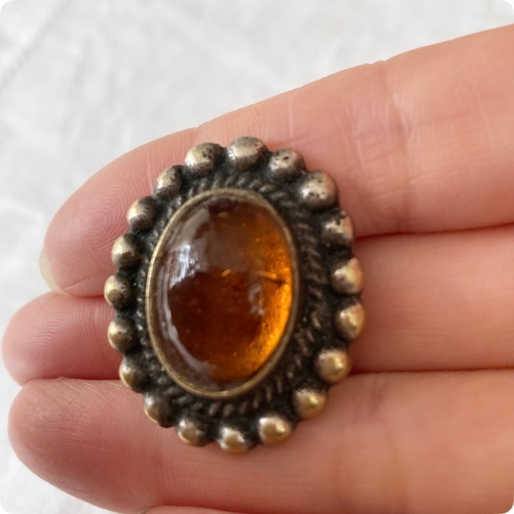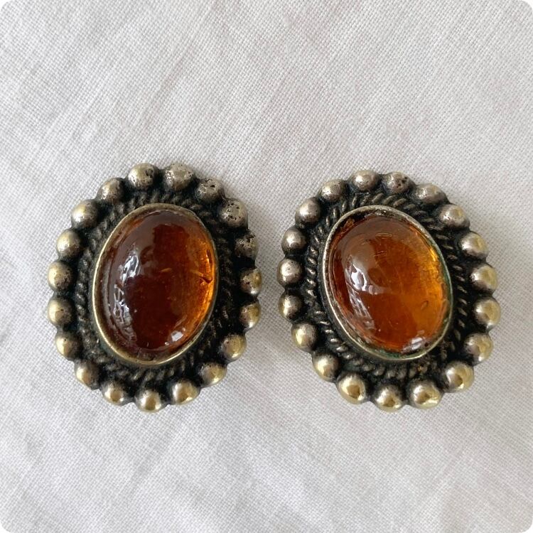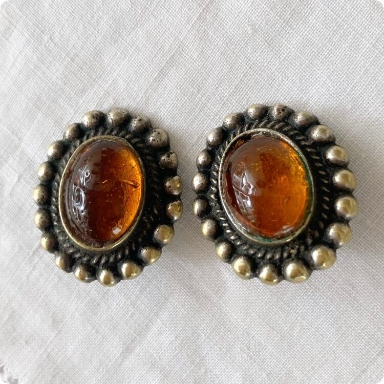 フランスヴィンテージ イヤリング|琥珀色 ガラス フランス直輸入|1900年代中頃