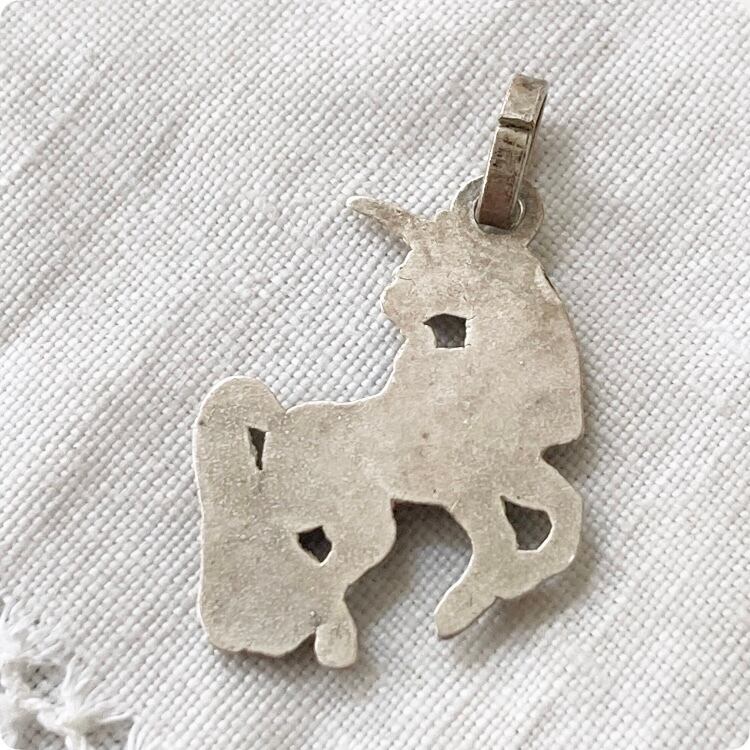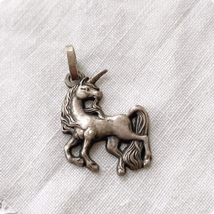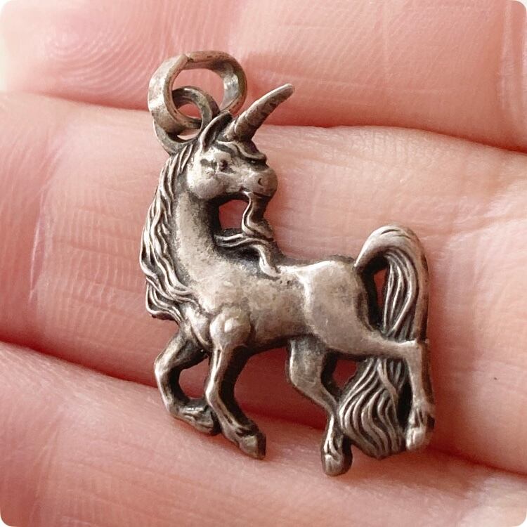このチャームは、個性的なユニコーンモチーフが特徴で、シルバー製の繊細な造形が美しい輝きを放っています。