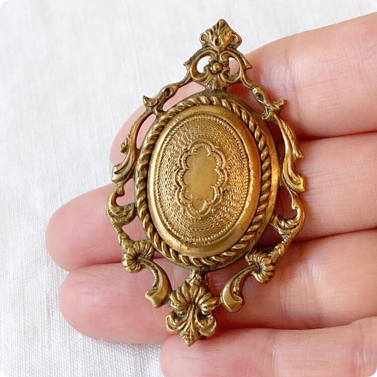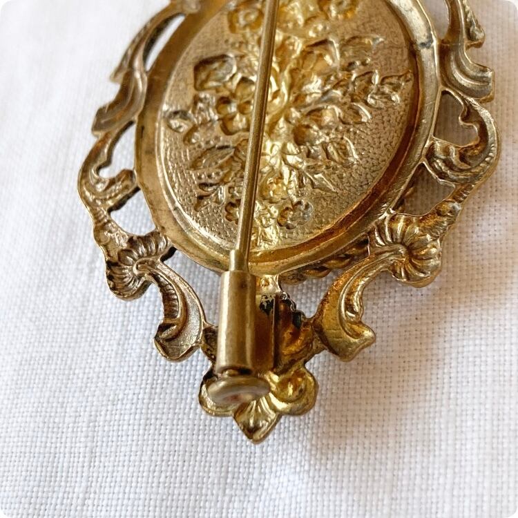 フランスヴィンテージ ブローチ | ロココ調 優美なロカイユ(貝殻模様)真鍮製 |1900年代中頃