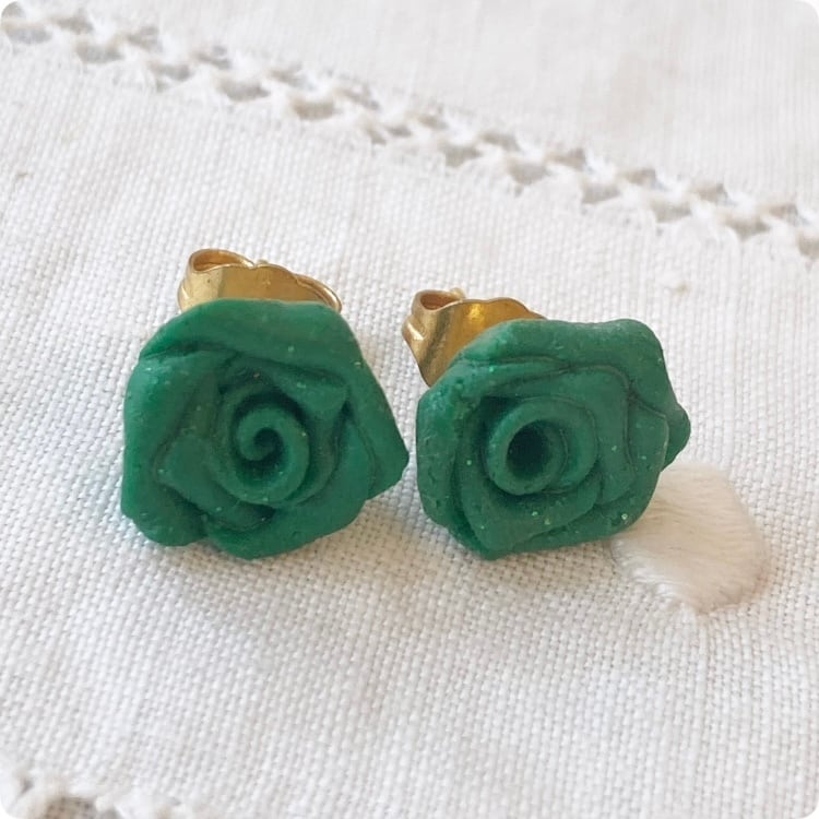 フランスヴィンテージ ピアス | グリーンローズ 薔薇モチーフ 樹脂製| 1900年代後半