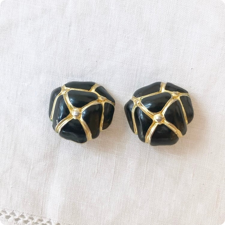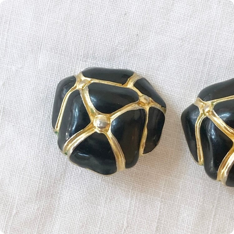 フランスヴィンテージ イヤリング | ブラックエナメル × ゴールド 幾何学模様 レトロ | 1900年代後半