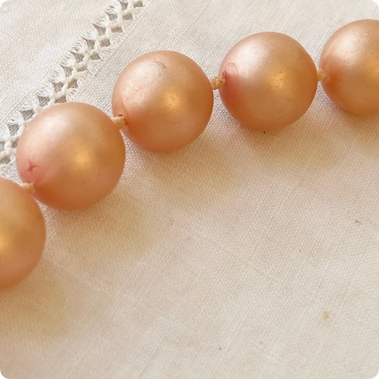 フランスヴィンテージ ピンクパール ネックレス |大粒フェイクパール マット仕上げ フォーマル |1900年代中頃~後半