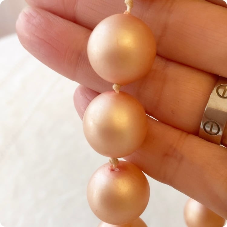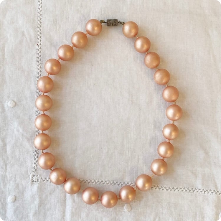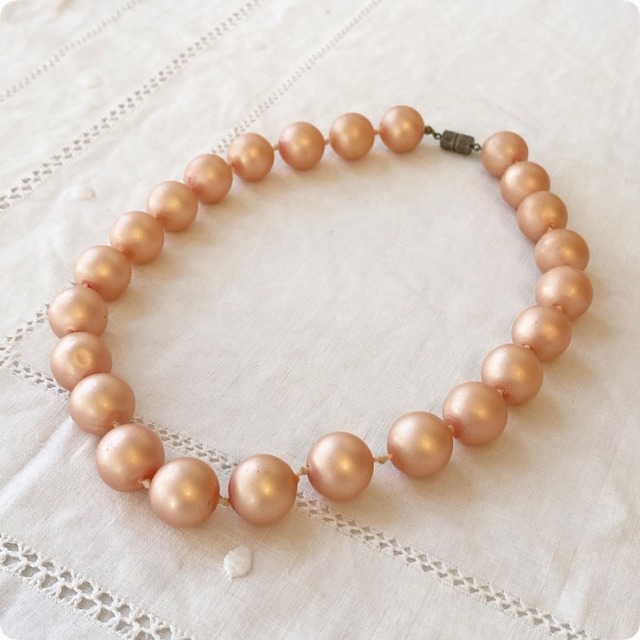 1900年代中頃から後半にかけて製作された、フランスヴィンテージのピンクパールネックレスです。