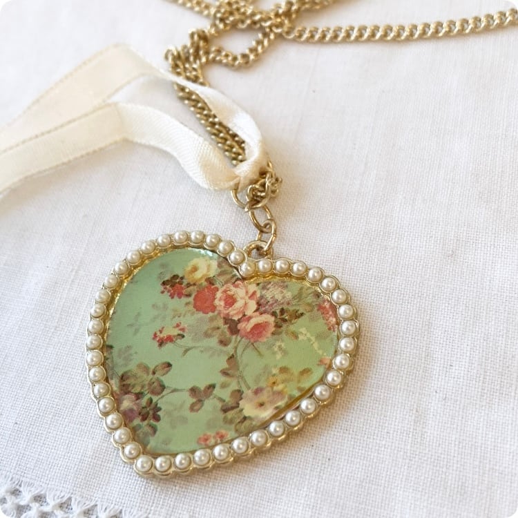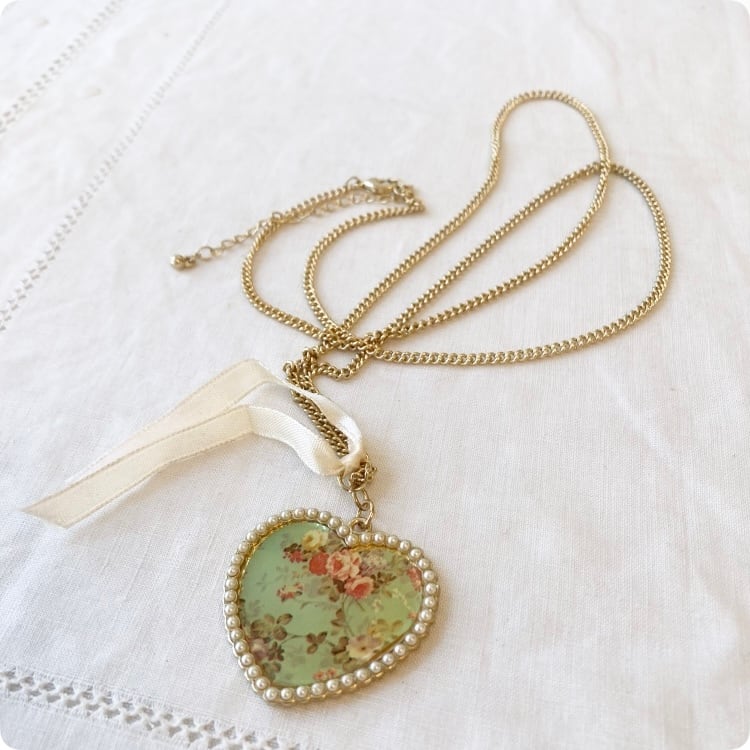 1900年代中頃から後半にかけて製作された、フランスヴィンテージの花柄ハート型ネックレスです。