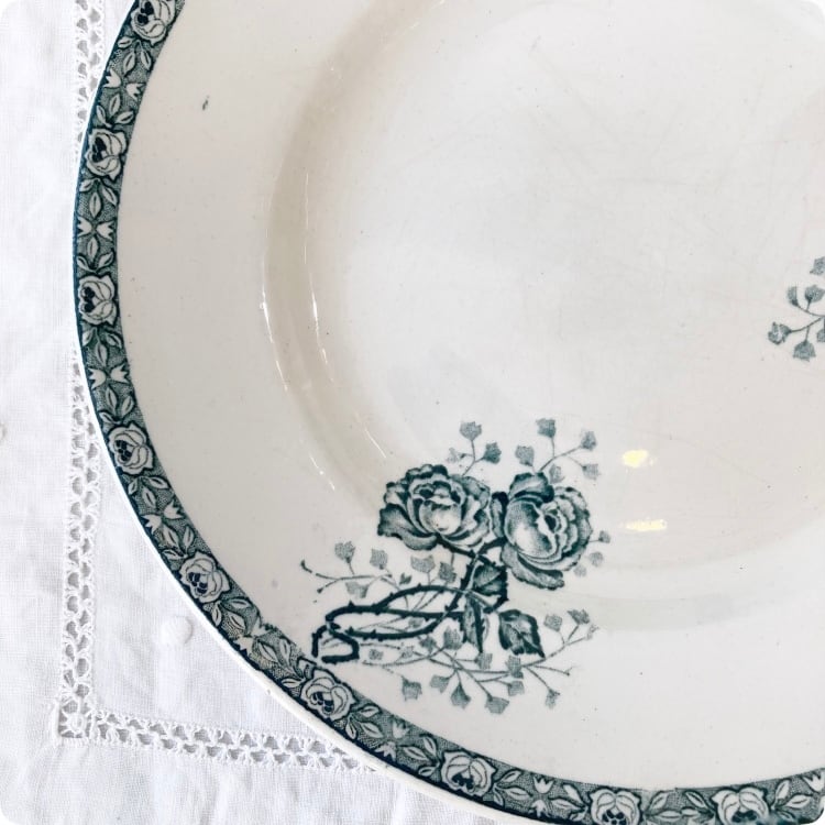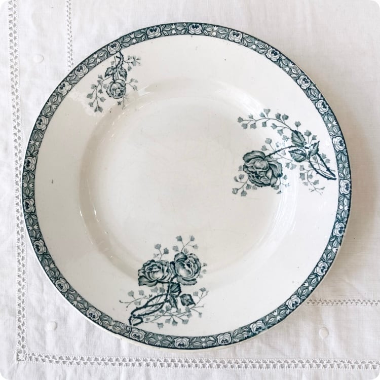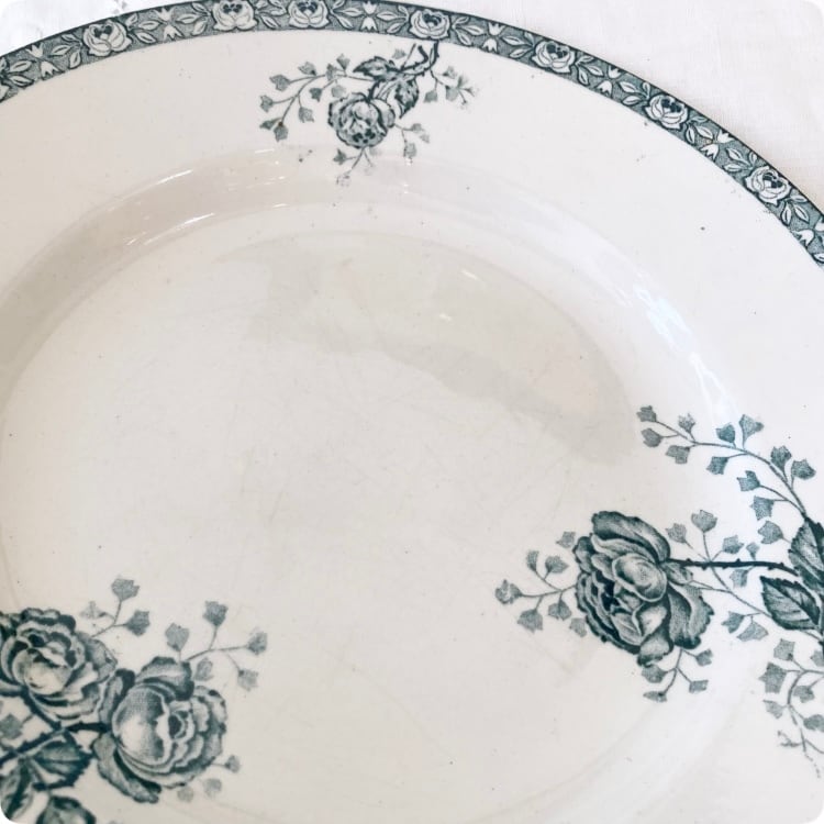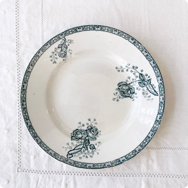 1900年頃に製作された、フランスアンティークの皿 テールドフェール(Terre de fer)「CHEVREUSE」シリーズです。