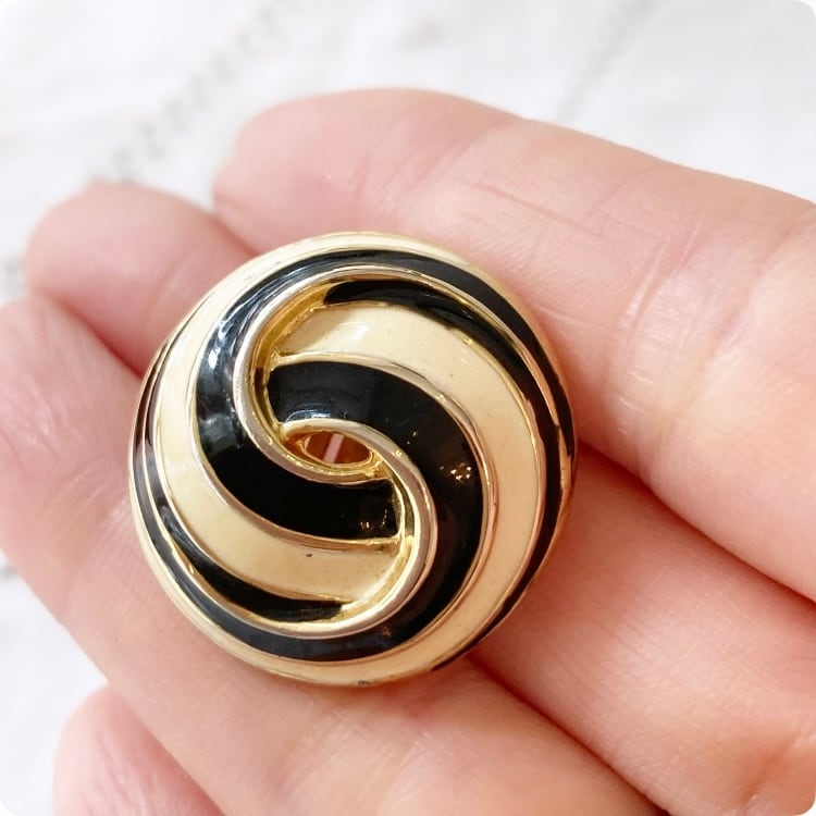 特徴的なブラックエナメルとアイボリーの渦巻状デザインが、レトロでありながらエレガントな印象を与えてくれますね。