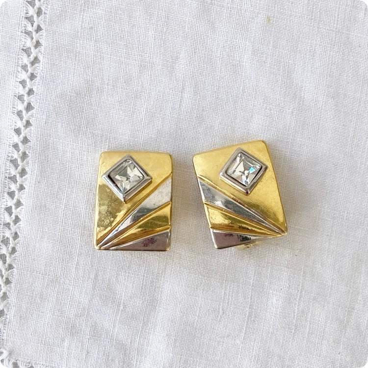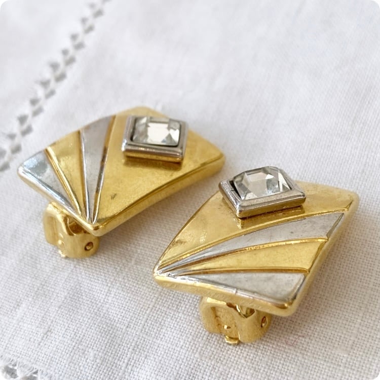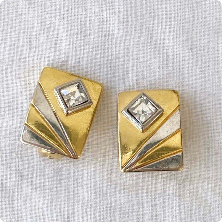 フランスヴィンテージ イヤリング | ゴールド スクエア型 個性的なデザイン | 1900年代中頃~後半