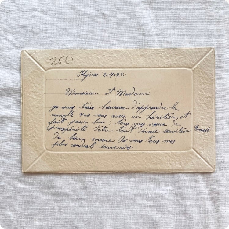 ポストカードを添えると、アンティーク感と季節の物語性がプラスされます。