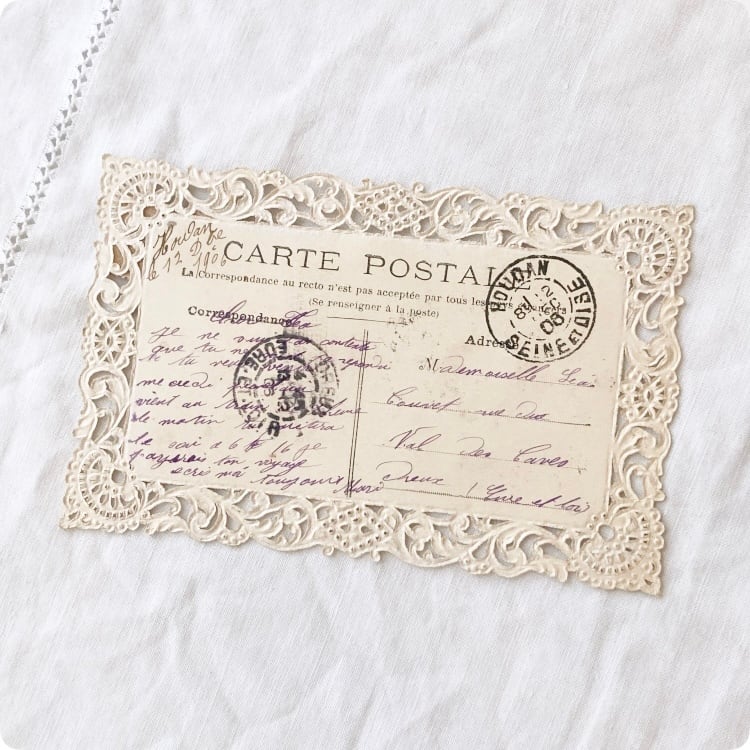 ポストカードを添えると、アンティーク感と季節の物語性がプラスされます。