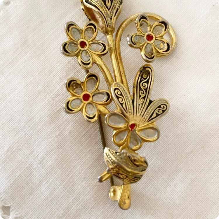 1940年頃に製造された、優雅なデザインが魅力的な、フランスヴィンテージのブローチです!