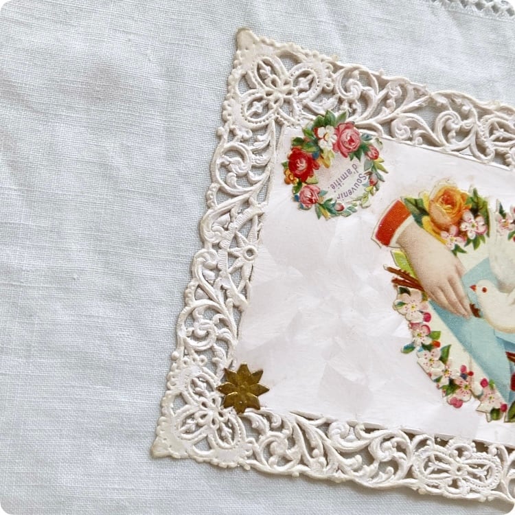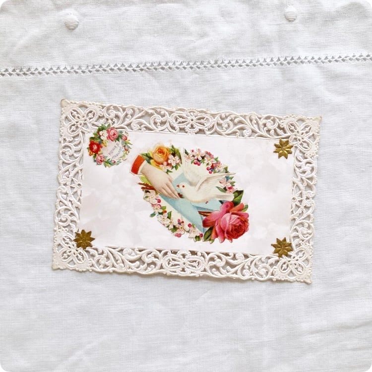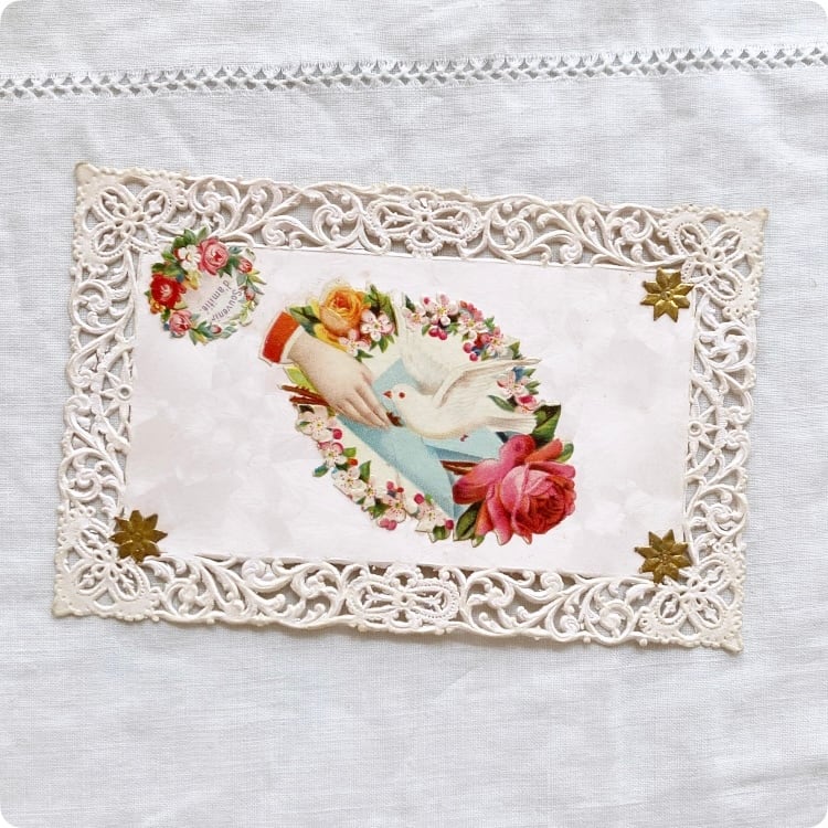 フランスアンティーク ポストカード | 鳩と薔薇 友情を意味するハンドモチーフ |1800年代後半~1900年代初期(A015)