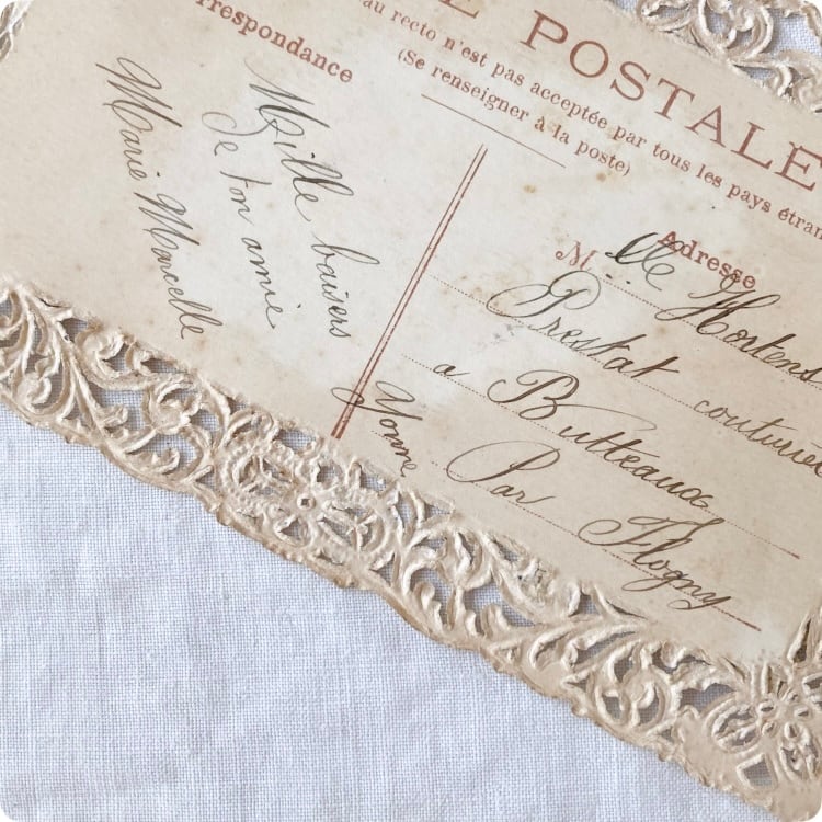 流れるような筆記体の筆跡や消印が残るアンティークポストカード。