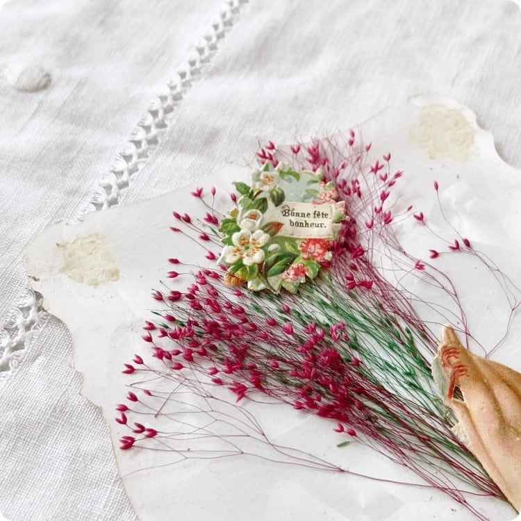 フランスアンティーク ポストカード | ヴィクトリアンハンド エンボス加工 ドライフラワー|(K0001)