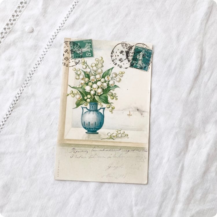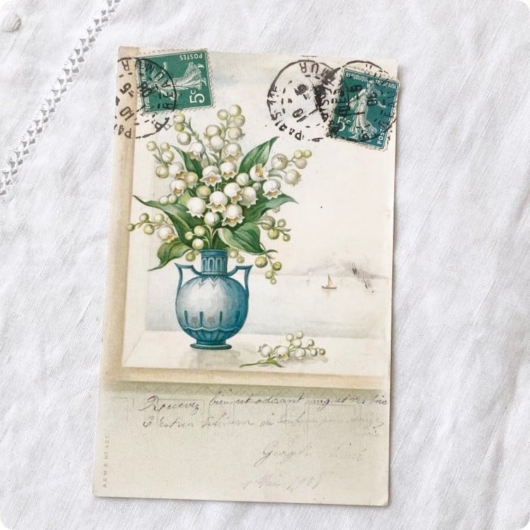 フランスアンティーク ポストカード |幸運をもたらす花 スズラン (ミュゲ)|1905年