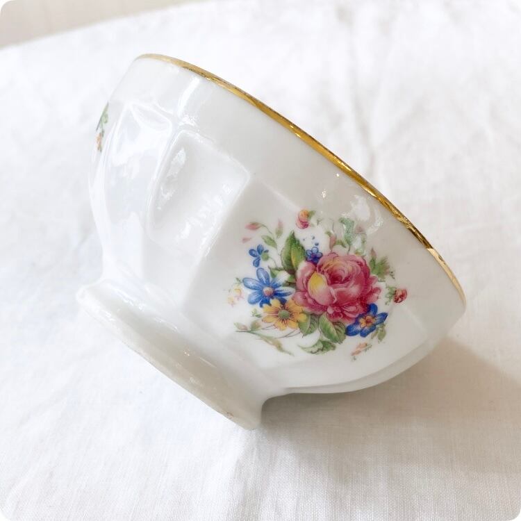 フランスアンティーク ミニカフェオレボウル | 色鮮やかな花のブーケ 白磁 金彩 | 1900年代中頃