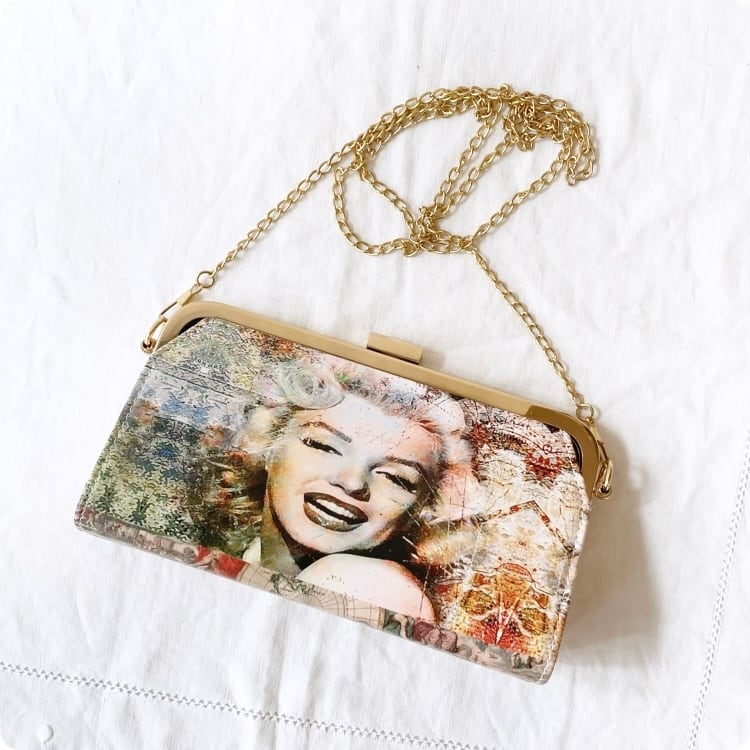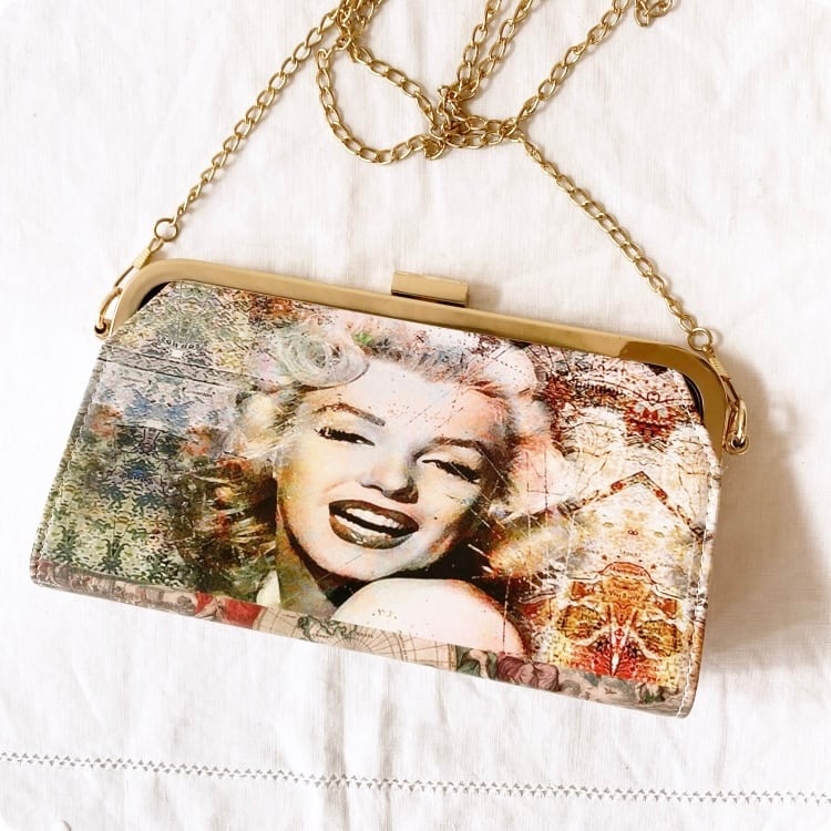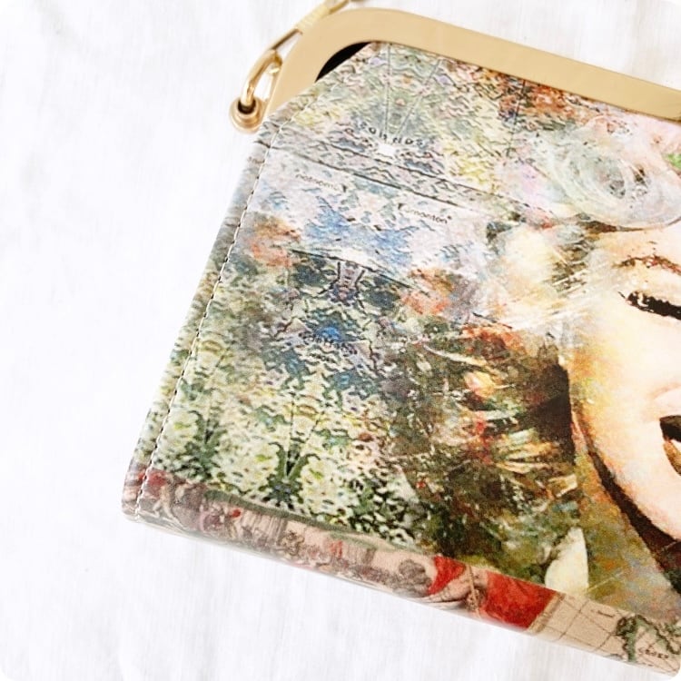 このバッグは、ヴィンテージ雑誌の表紙を思わせる印象的なプリントが施されており、まるで現代アートのような逸品です。