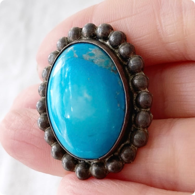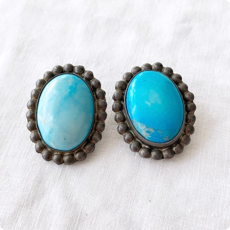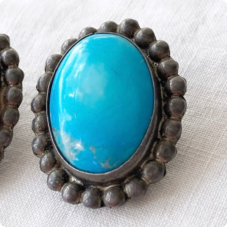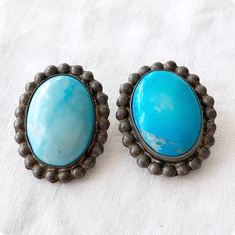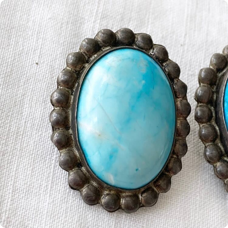 フランスヴィンテージ イヤリング | 天然ターコイズ スタッド ナバホハンドメイド ジュエリー | 1900年代中頃